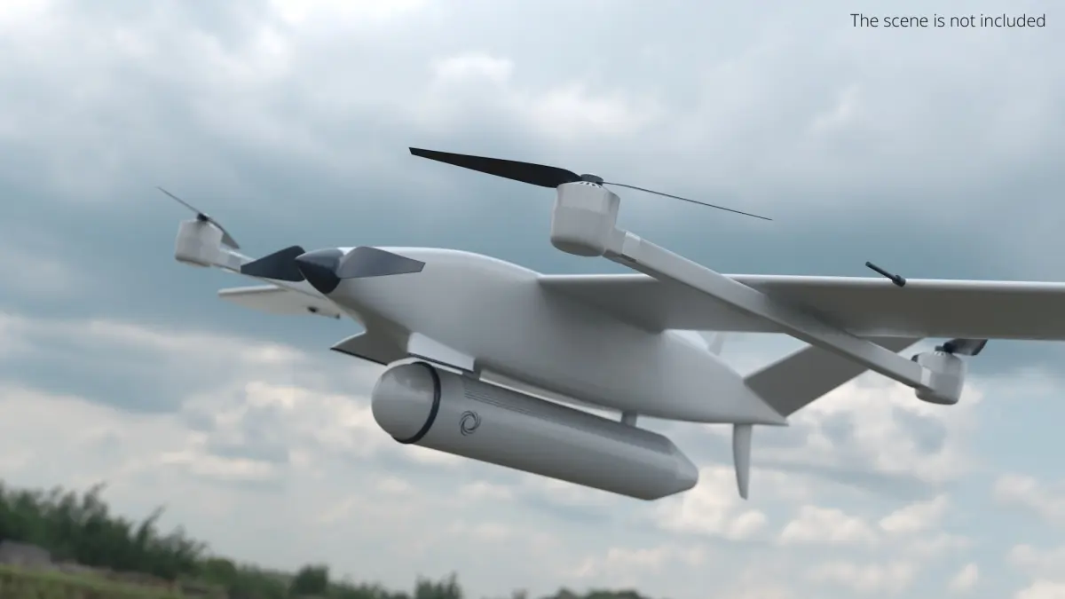 Sahara Harmattan AI Radar Drone VTOL White is a 3d model of an innovative vertical takeoff and landing unmanned aerial vehicle, designed for advanced transport and delivery solutions.