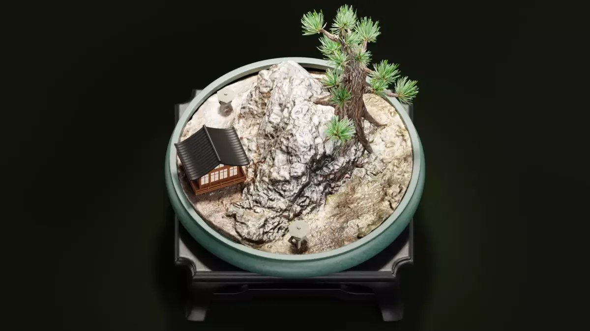 - Modeling timelapse video showcases the creation process of this Saikei miniature garden — from photogrammetry to final composition.