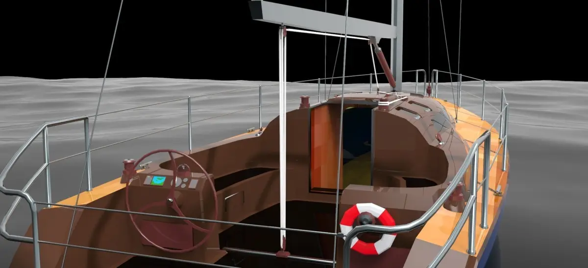 Partially furnished sailboat with:- kitchen block- dining block with ceiling fan- front bed cabin- WC with Hot tub