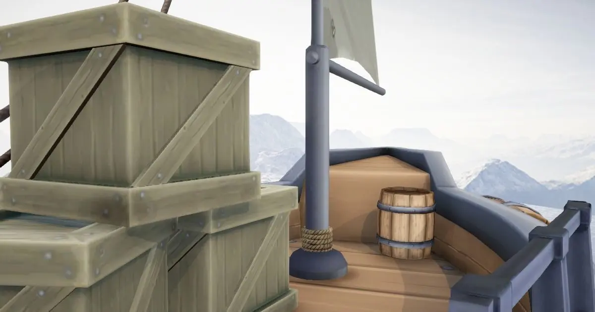 •The boxes, barrels, anchor, flag, ropes and sail are separate/parented objects so they can be animated or removed easily.
