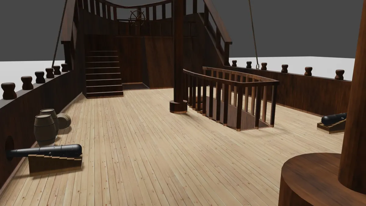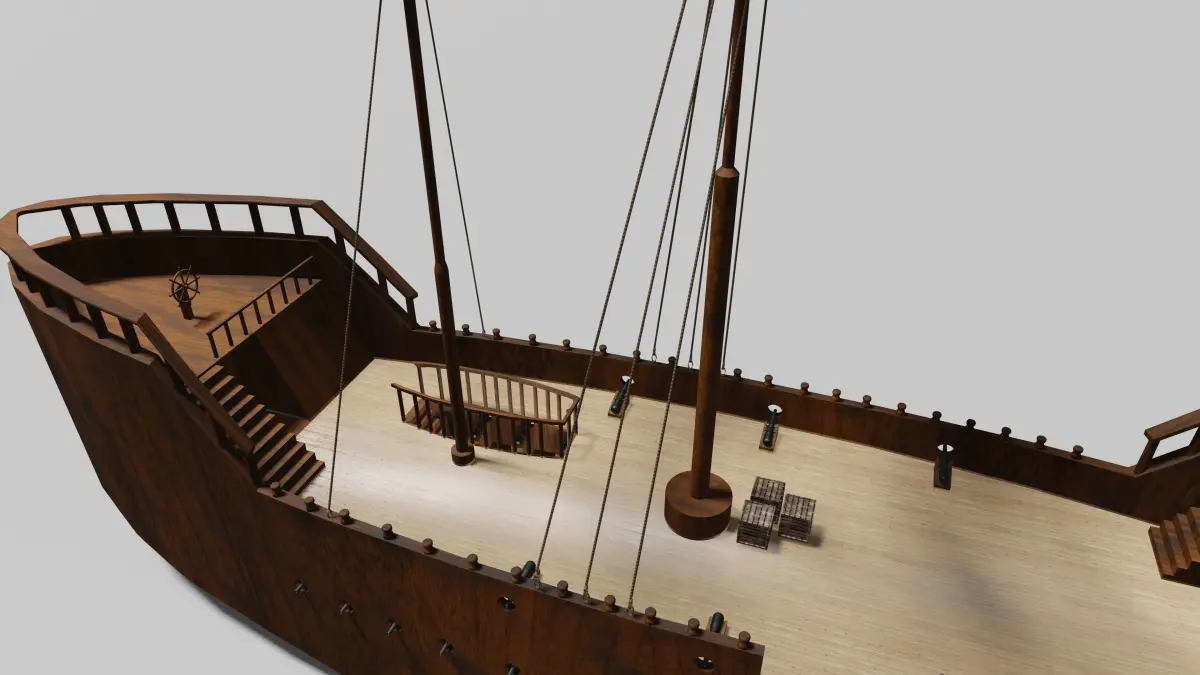 Pirate shipHigh quality multistore pirates ship with including cannons ,barrels, crates etcMaterials and texture.Created in blender.file formatsFBXSTLBlend(native)
