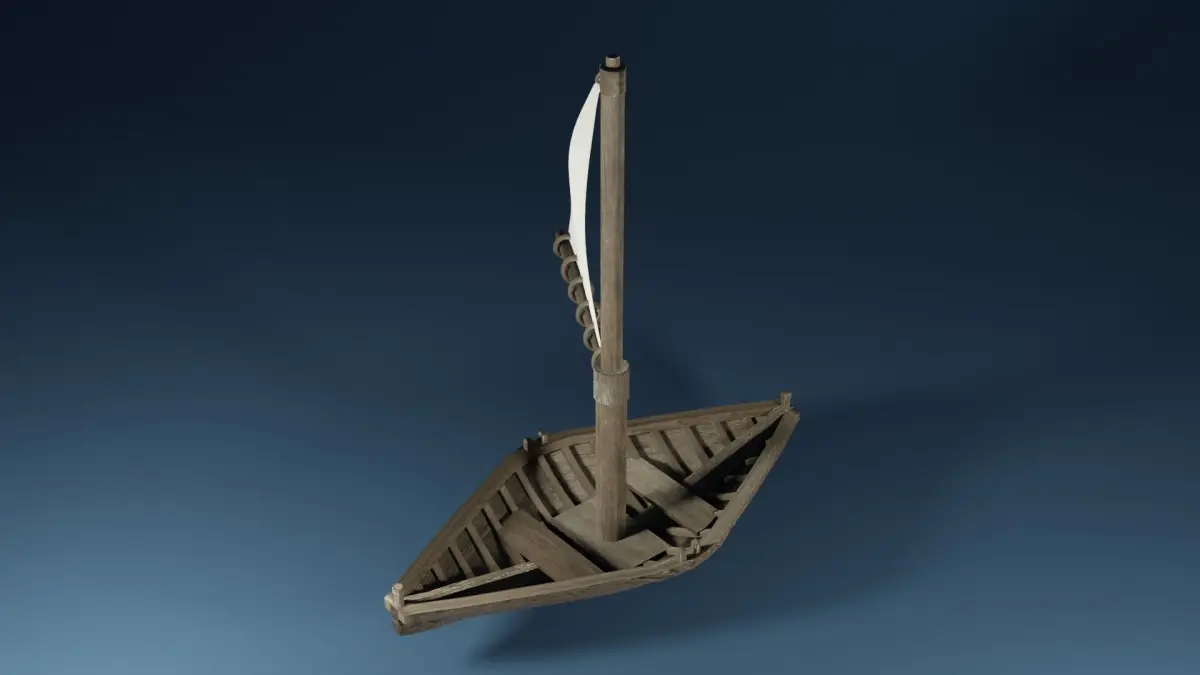 A small sailboat with a triangle mast. It is all made out of a wood texture except for the sail which is made out of a white material. The colors and the materials can be changed.