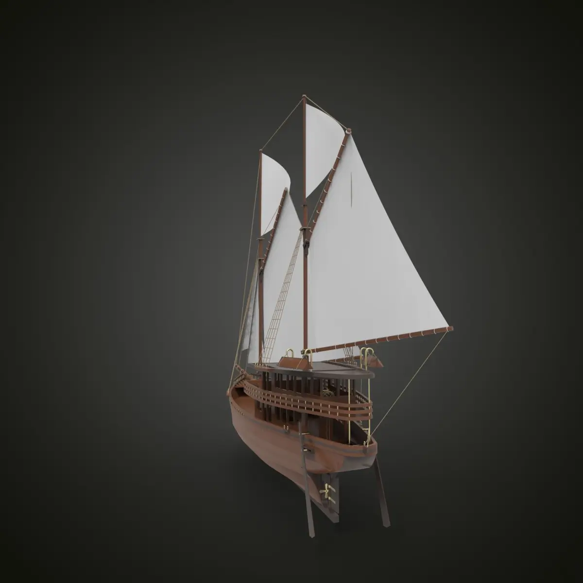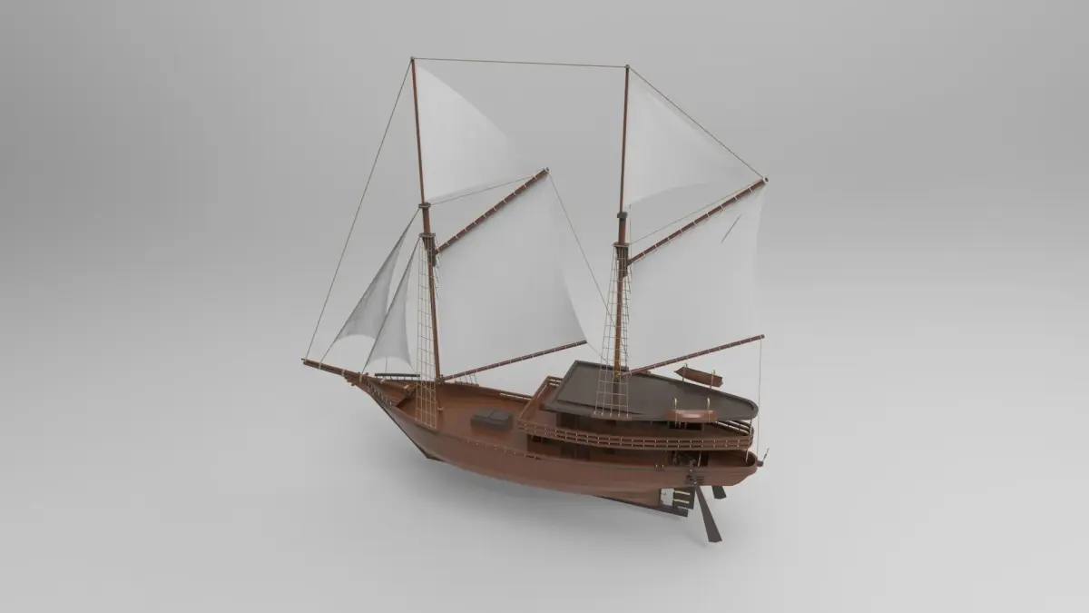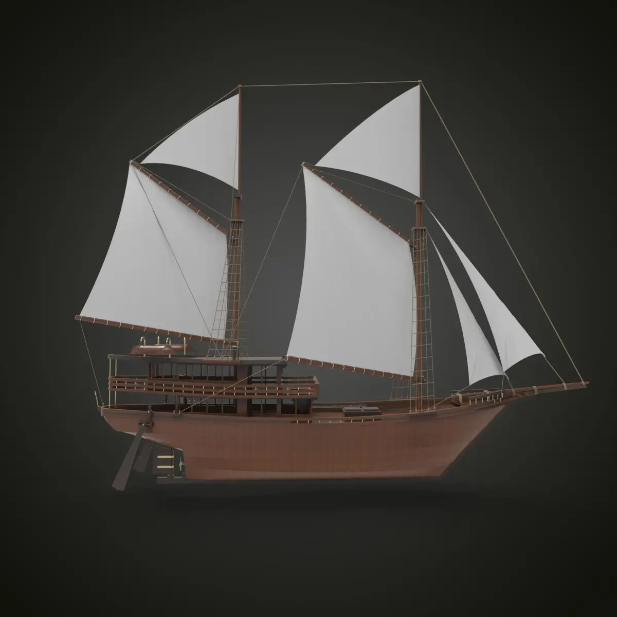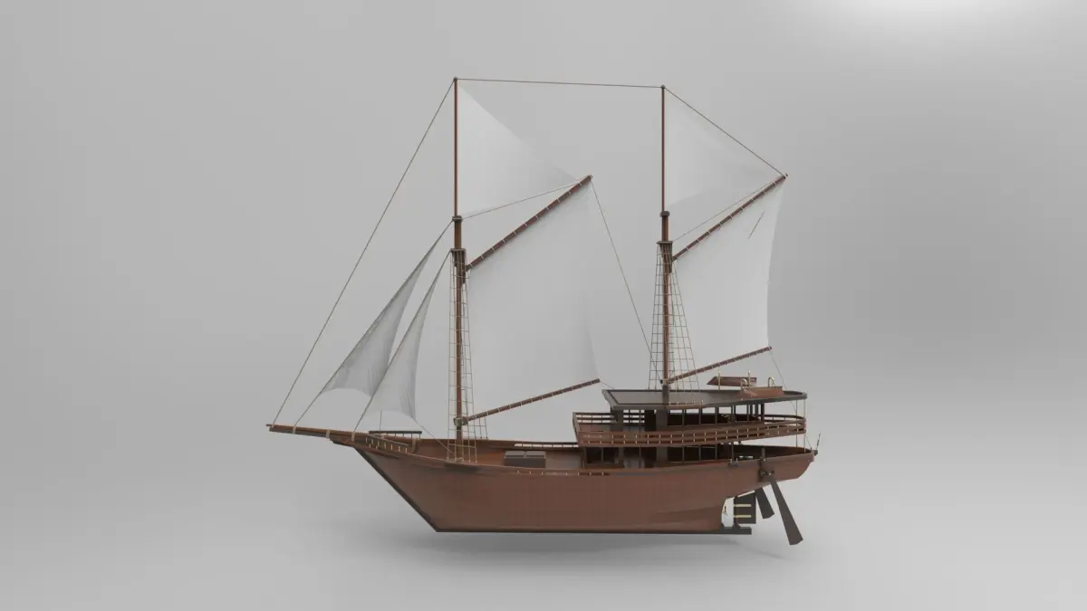 Literally, the word pinisi refers to a type of rigging (the configuration of masts, sails and ropes (‘lines’)) of Indonesian sailing vessels. A pinisi carries seven to eight sails on two masts, arranged like a gaff-ketch with what is called 'standing gaffs' - i.e., unlike most Western ships using such a rig, the two main sails are not opened by raising the spars they are attached to, but the sails are 'pulled out' like curtains along the gaffs which are fixed at around the centre of the masts.