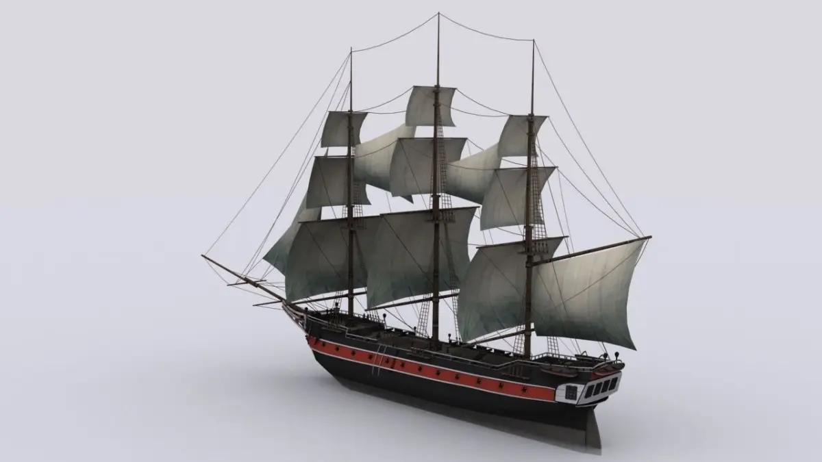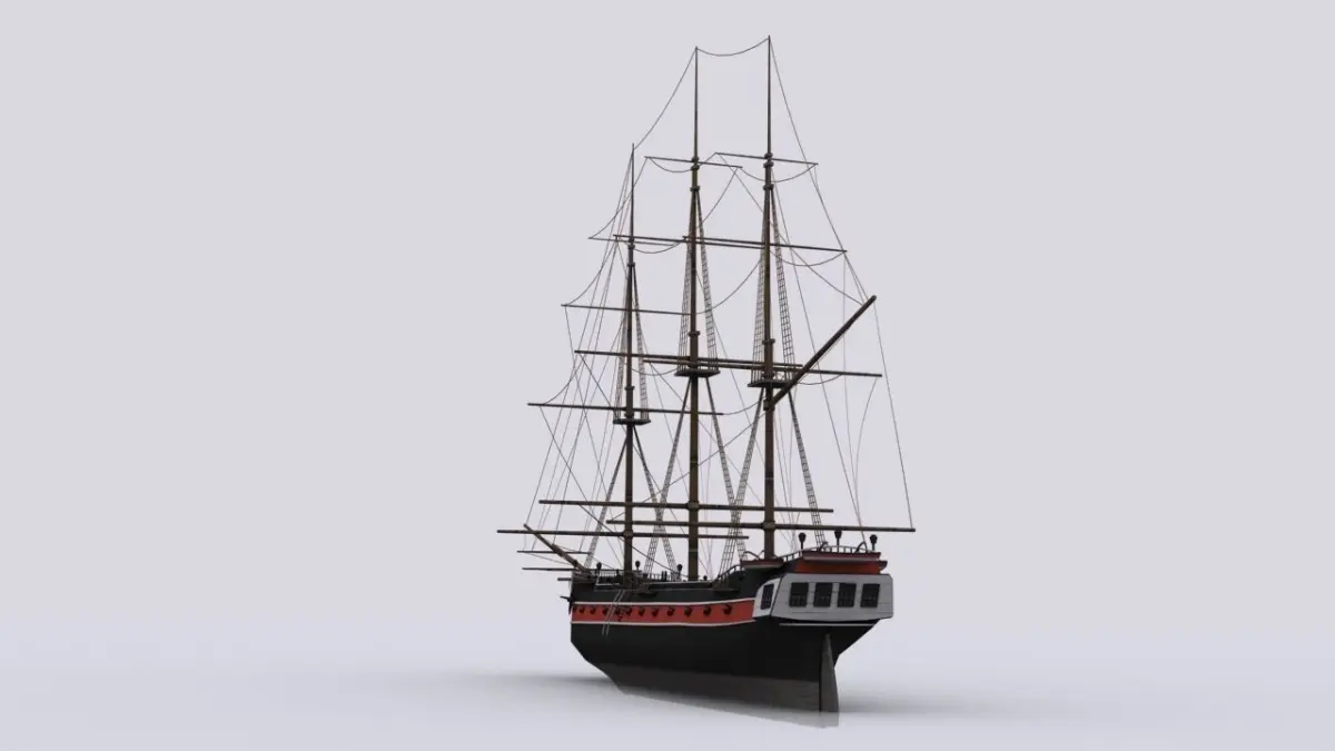 Sailing warship corvette Low-poly 3D model