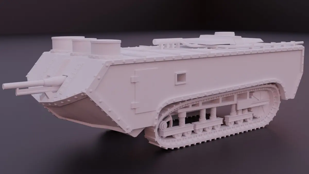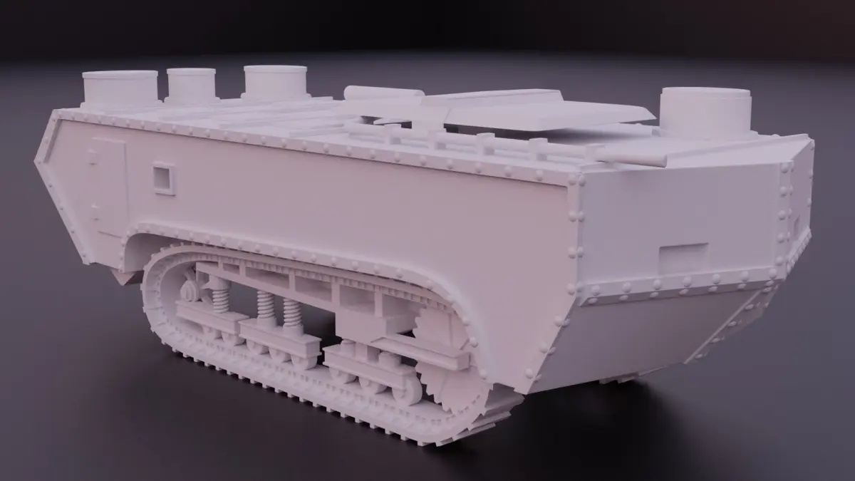 The Saint-Chamond tank was the second French tank to enter service during the First World War, with 400 manufactured from April 1917 to July 1918. Although not a tank by a strict definition of a heavily armored turreted vehicle, it is generally accepted and described as such in accounts of early tank development. It takes its name from the commune of Saint-Chamond where its manufacturers Compagnie des forges et aciéries de la marine et d'Homécourt (FAMH) were based. Born of the commercial rivalry existing with the makers of the Schneider CA1 tank, the Saint-Chamond was an underpowered and fundamentally inadequate design. Its principal weakness was its Holt caterpillar tracks. They were much too short in relation to the vehicle's length and weight (23 tons). Later models attempted to rectify some of the tank's original flaws by installing wider and stronger track shoes, thicker frontal armor, and the more effective 75mm Male 1897 field gun. Altogether 400 Saint-Chamond tanks were built, including 48 unarmed caisson tanks. The Saint-Chamond tanks remained engaged in various actions until October 1918, belatedly becoming more effective since combat had moved out of the trenches and onto open ground. Eventually, the Saint-Chamond tanks were scheduled to be entirely replaced by imported British heavy tanks.