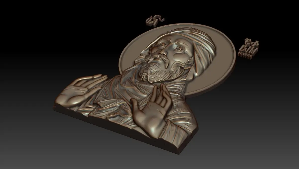 3d model Orthodox icon Saint Ephraim the Syrian (Ἐφραίμ ὁ Σῦρος). For milling on CNC machines. Can be used in the production of souvenirs, furniture, jewelry. Files in stl format, for import to artcam, rhinoceros, 3ds max, etc. You can scale the model to any size you need.