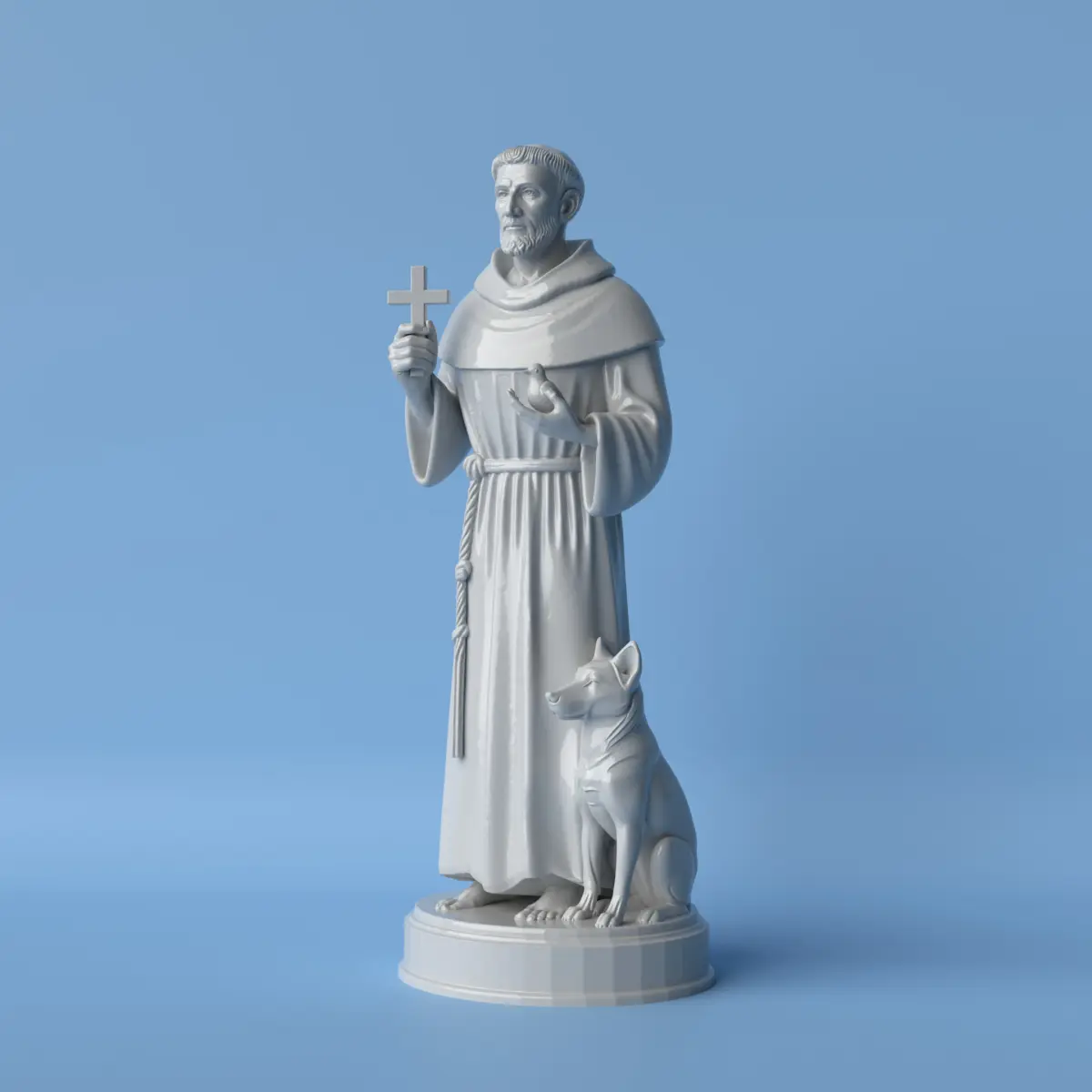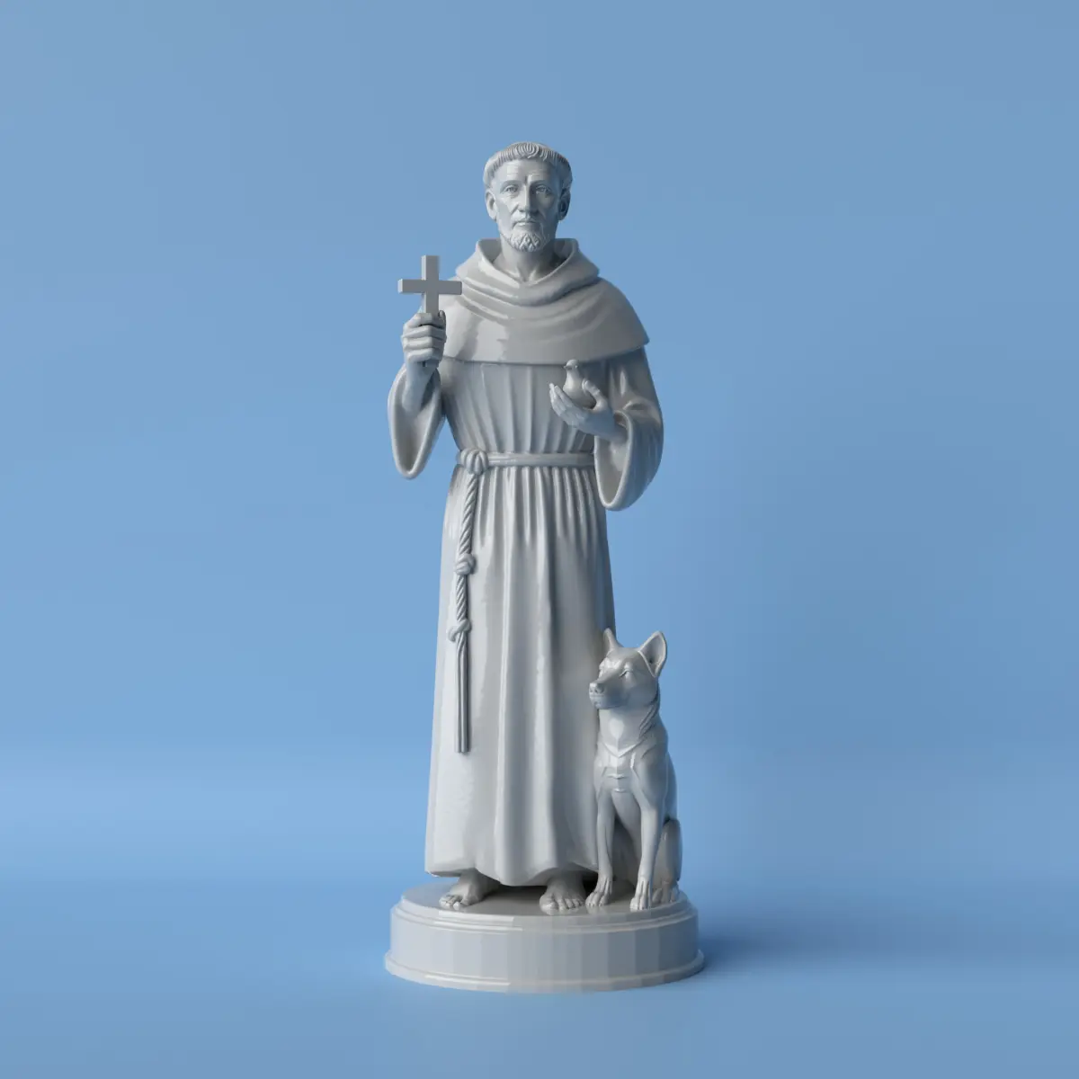 A serene bust of Saint Francis of Assisi, known as the patron saint of animals and nature, sculpted with peaceful features and gentle expression. This minimalist 3D model captures his deep spirituality, humility, and love for creation. Designed for easy and clean 3D printing, it’s a meaningful piece for devotees, nature lovers, or anyone seeking calm and inspiration in their space.