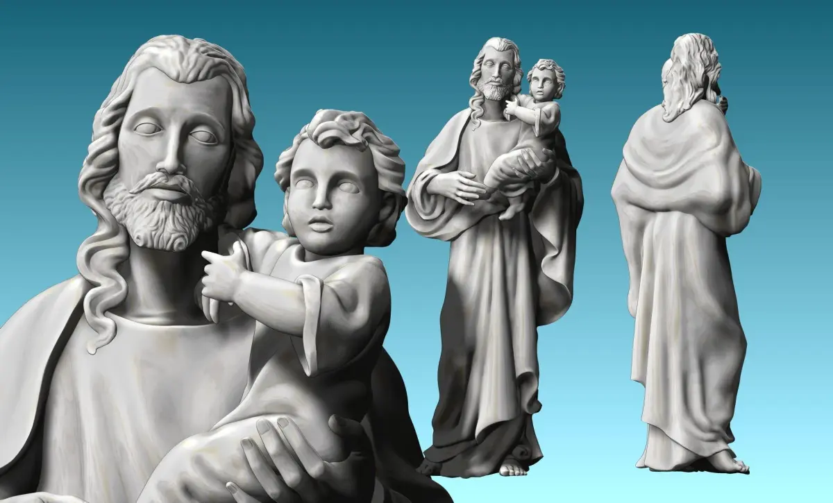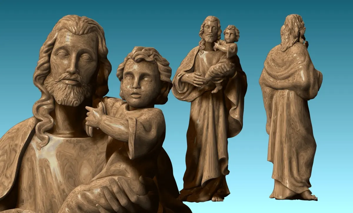 Another work done in collaboration with a colleague for his carpentry. Originally designed for CNC Routing Machines. Based on classic designs of Catholic Art, Joseph and baby Jesus.