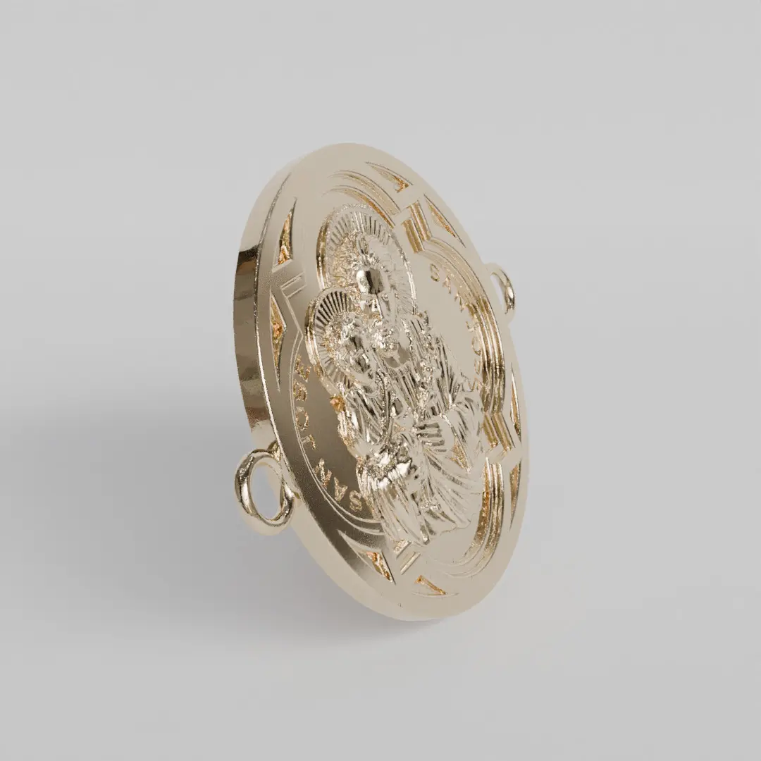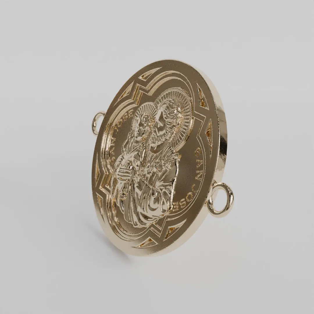 Saint Joseph medal20 mm in diameter, completely round, with beveled edges inside and a central portrait of Saint Joseph holding the Divine Child.