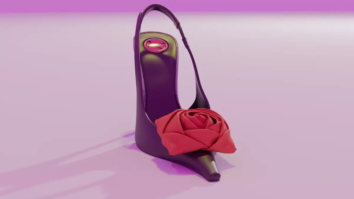 This isn't just a 3D model; it is a complete Digital Fashion Campaign. The model features a sleek, patent black finish accented by a romantic red rose—perfect for virtual runways, perfume advertisements, or museum-grade digital exhibits.