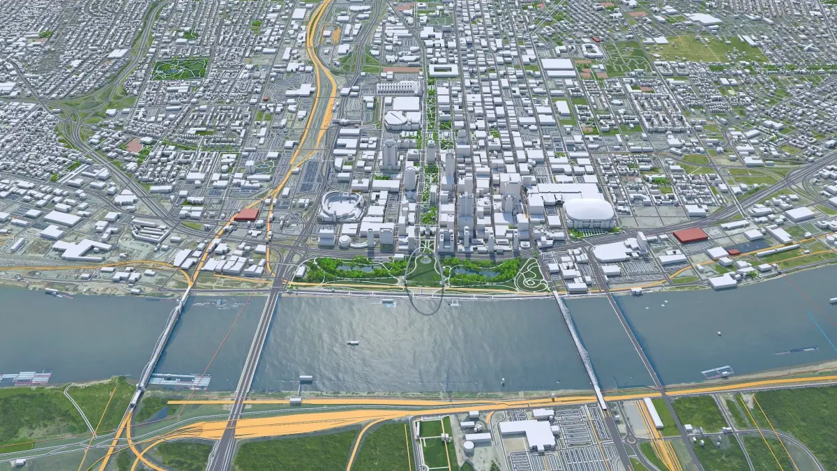 Accurate 3D city model and its surrounding area based on GIS data Year 2022