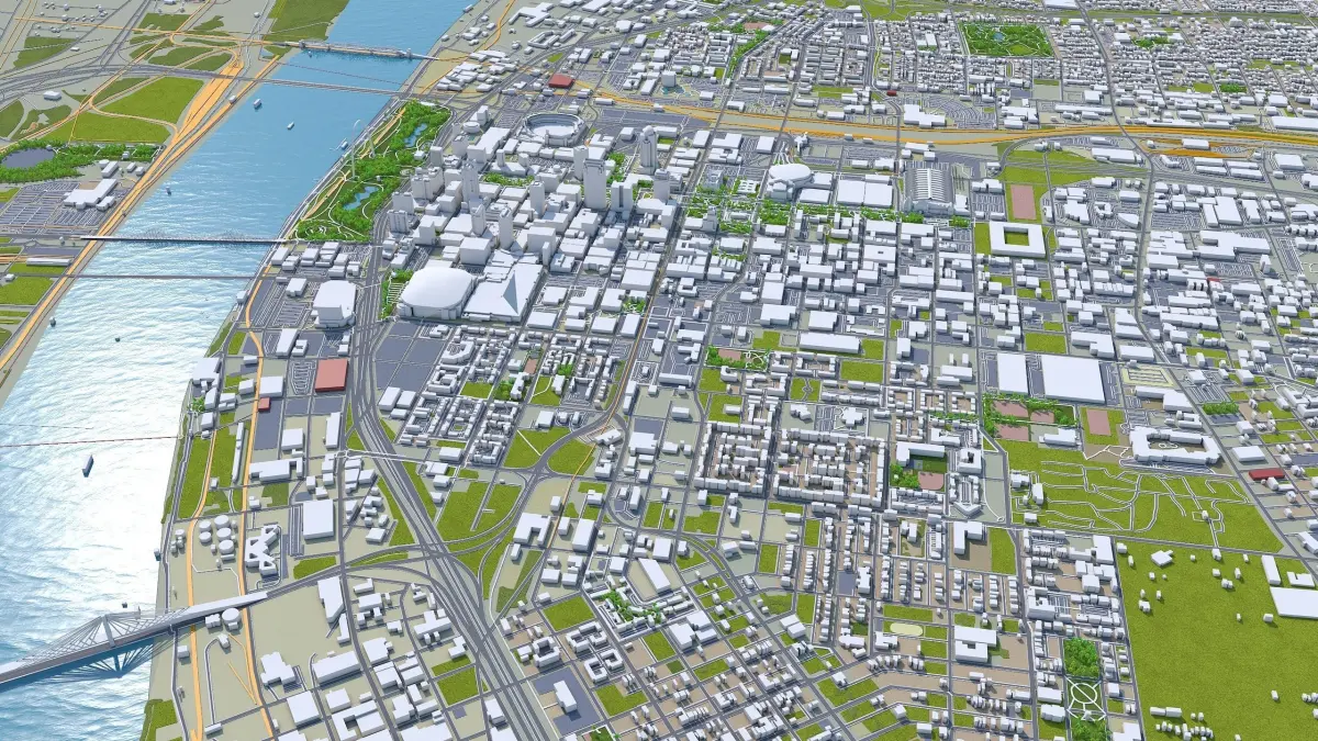 Accurate 3D city model and its surrounding area based on GIS data Year 2022