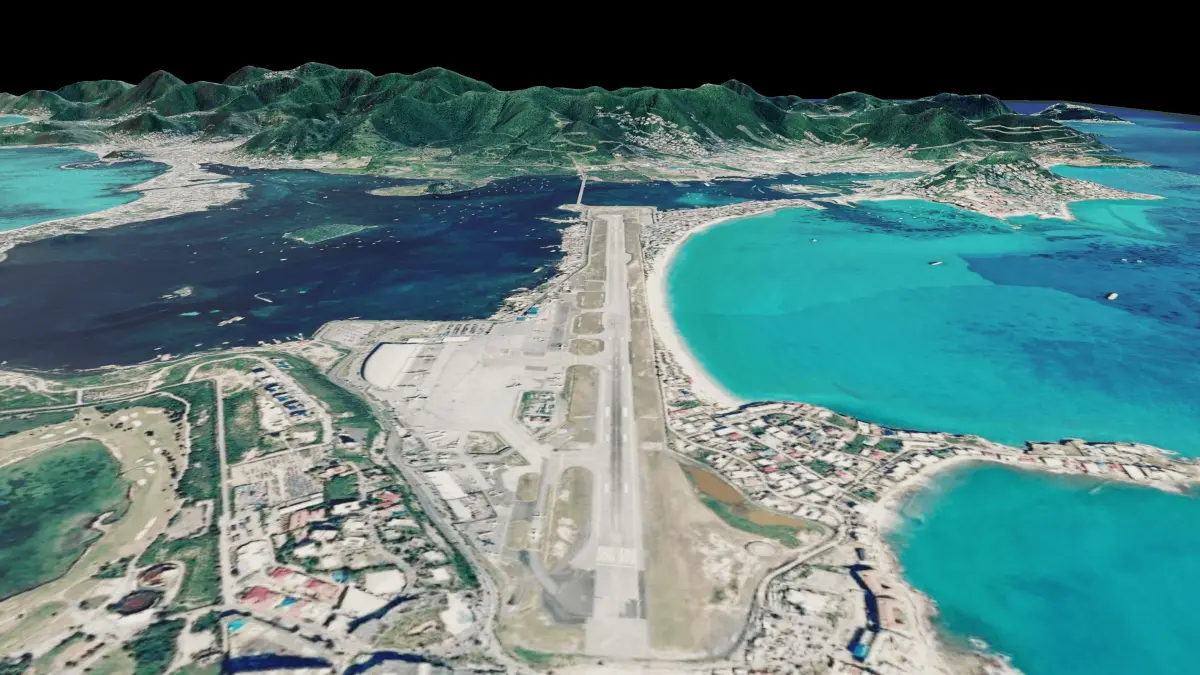 Saint Martin island full 3d model terrain. 3d model of the Island of Sint Maarten with its landscape of mountains, beaches and forests