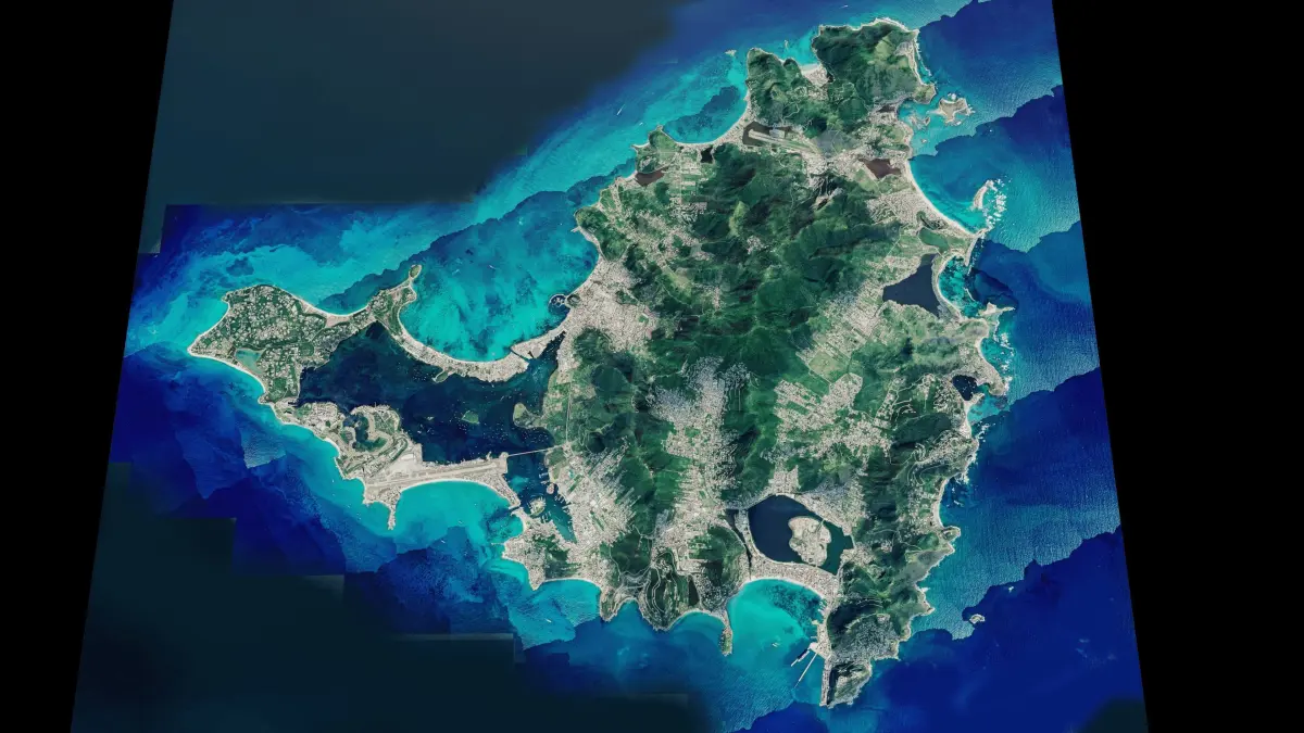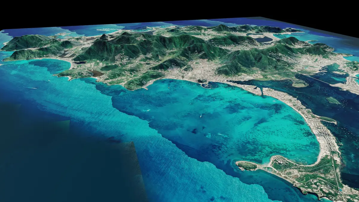 3d model landscape of Saint Martin, Leeward Islands, Caribbean Sea.