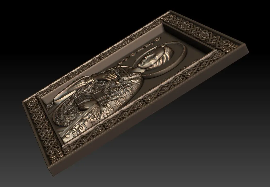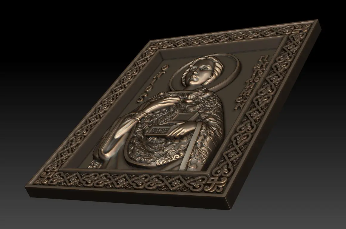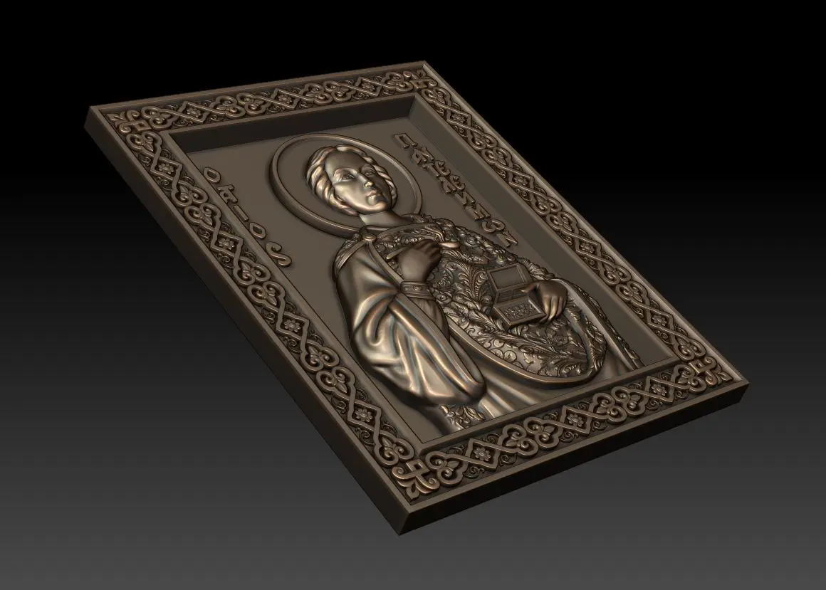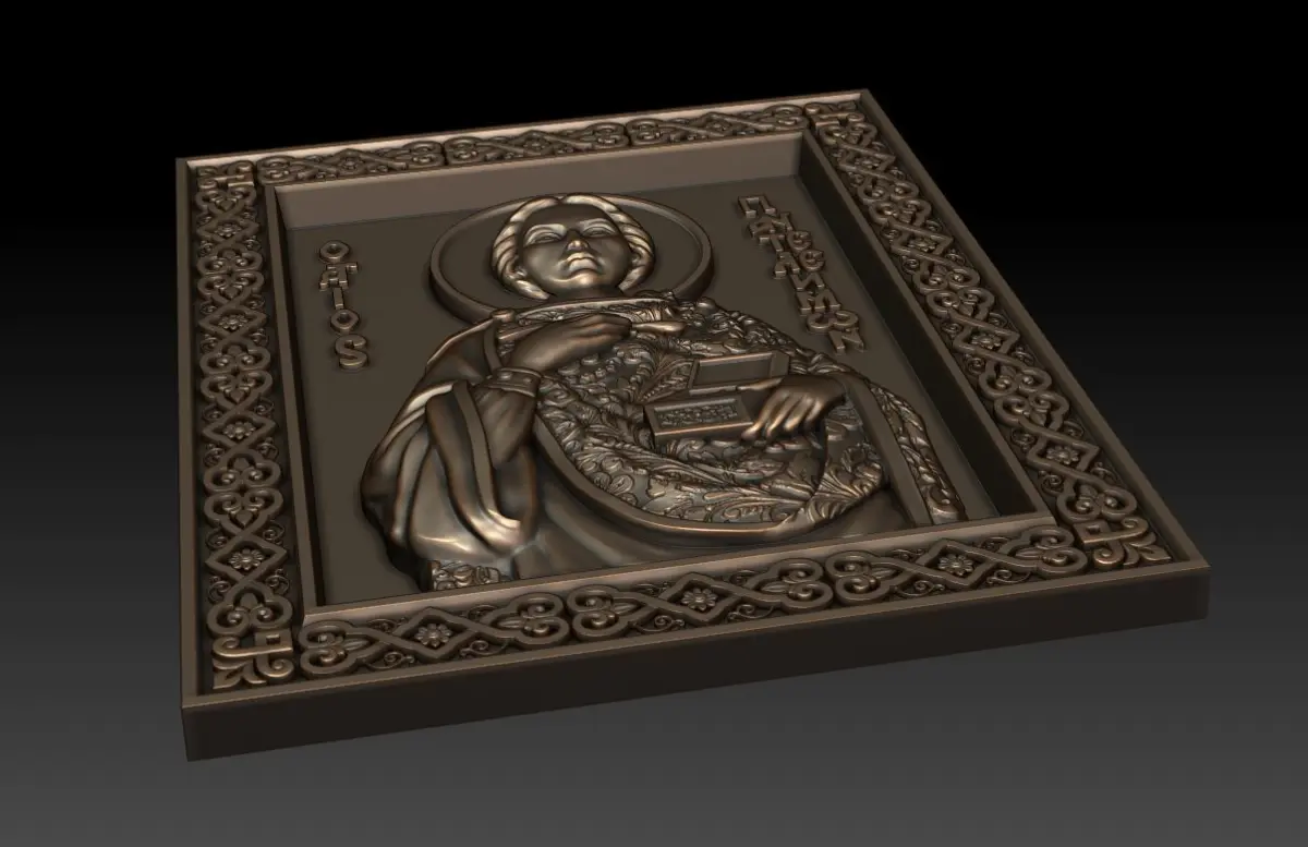 3d model Orthodox icon Saint Pantaleon (Greek: Παντελεήμων, Russian: Пантелеи́мон, romanized: Panteleímon; all-compassionate) For milling on CNC machines. This model is ONLY for cnc, it is NOT for 3d printing. Can be used in the production of souvenirs, furniture, jewelry. Files in stl format, for import to artcam, rhinoceros, 3ds max, etc. You can scale the model to any size you need.