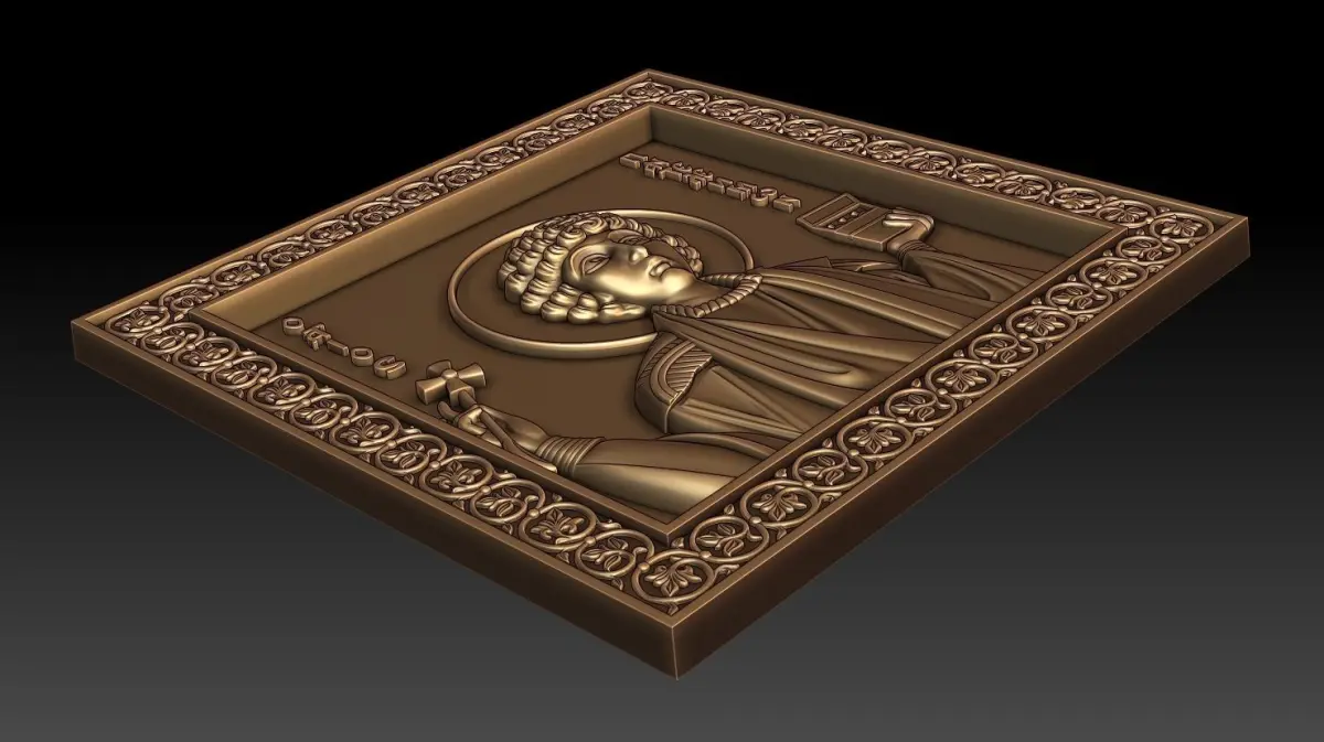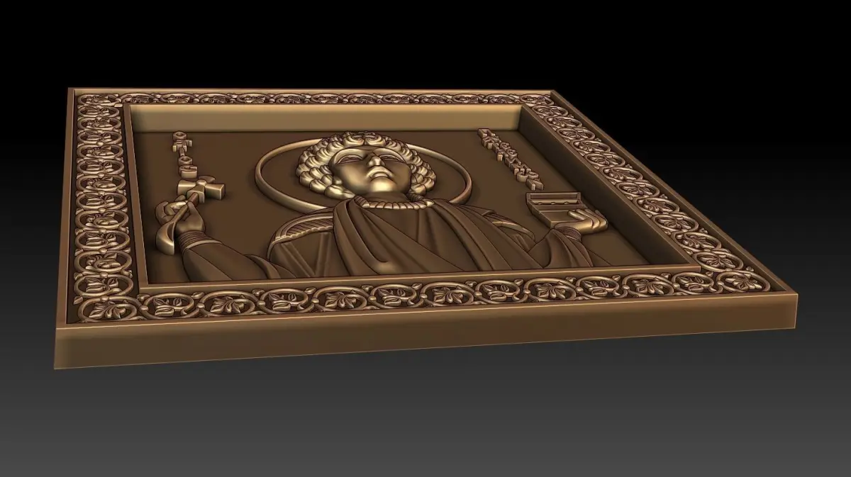 3d model Orthodox icon Saint Pantaleon (Greek: Παντελεήμων, Russian: Пантелеи́мон, romanized: Panteleímon; all-compassionate) For milling on CNC machines. This model is ONLY for cnc, it is NOT for 3d printing. Can be used in the production of souvenirs, furniture, jewelry. Files in stl format, for import to artcam, rhinoceros, 3ds max, etc. You can scale the model to any size you need.