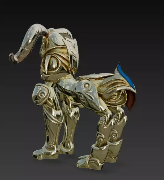 3D model descriptionAries Mū (牡羊座アリエスのムウ Ariesu no Mū?) is one of the 12 gold saints. He is one of the bronze saint's most trusted allies, and serves as the man who repairs damaged cloths in the early stages of the series. He is also know as Mu of Jamir the Cloth Blacksmith.Mu was a sturdy man of medium height, but wasn't much muscled. He had round eyebrows which was popular among Japanese and ancient Chinese lords. Although he was a Chinese, he had gold hair and green eyes(pink hair and green eyes in anime).