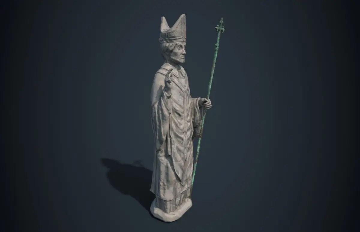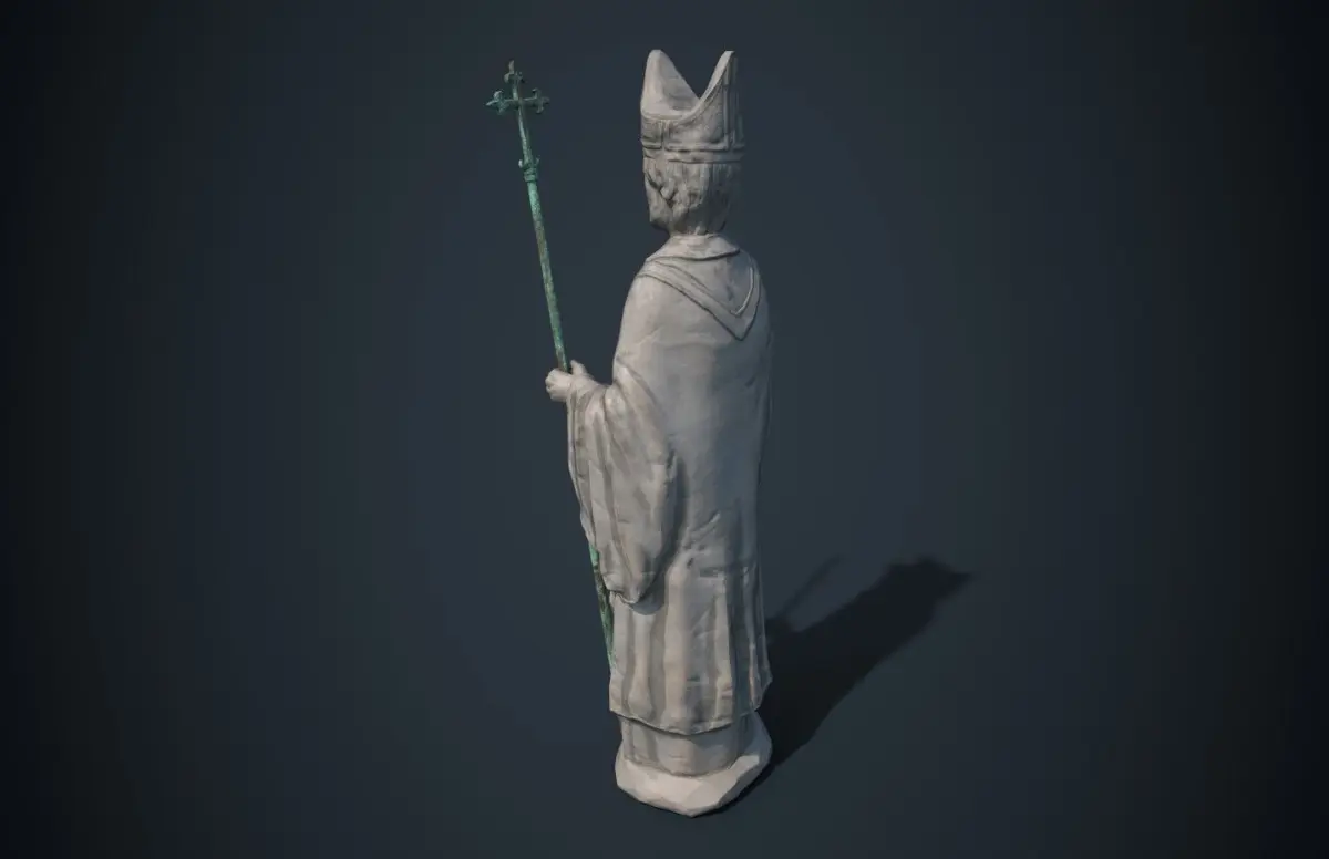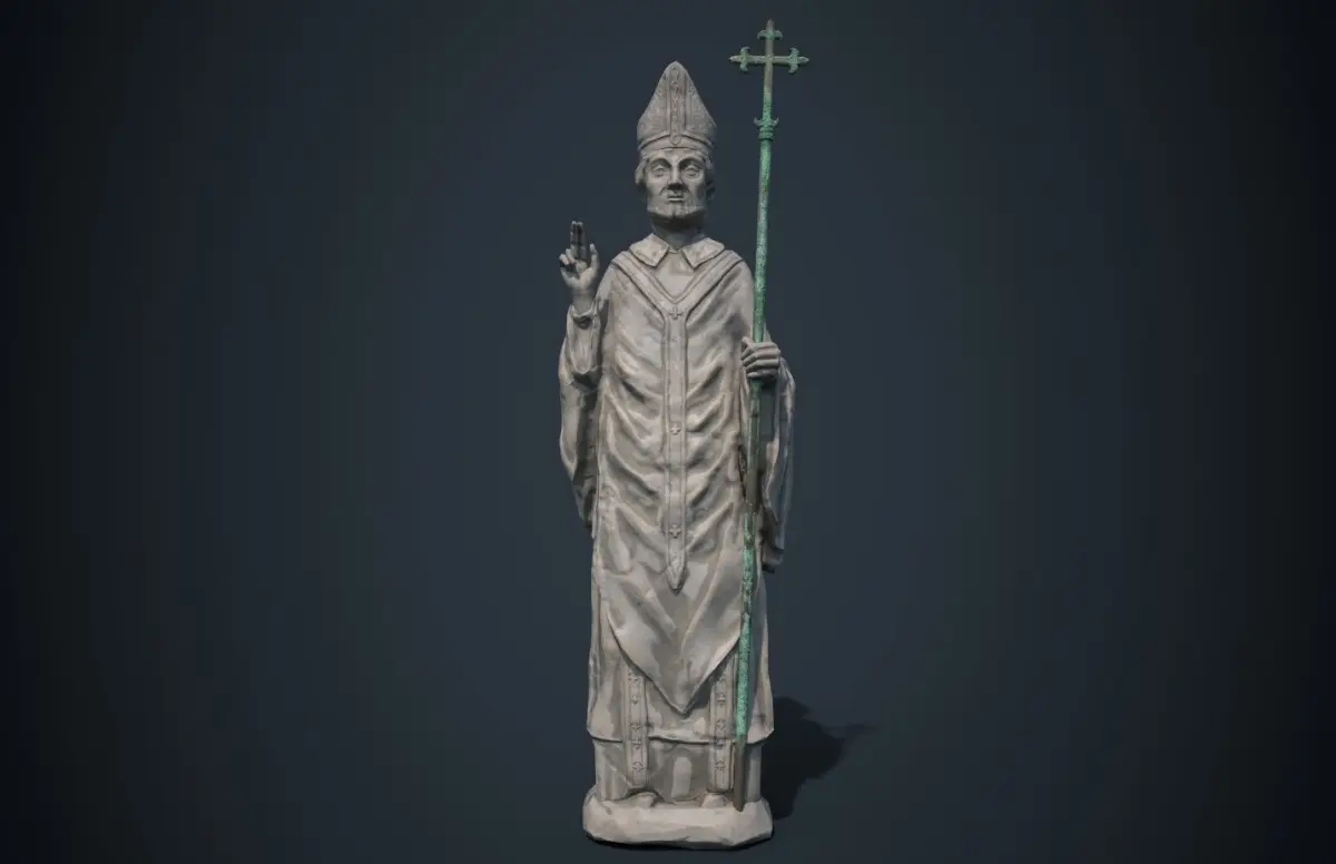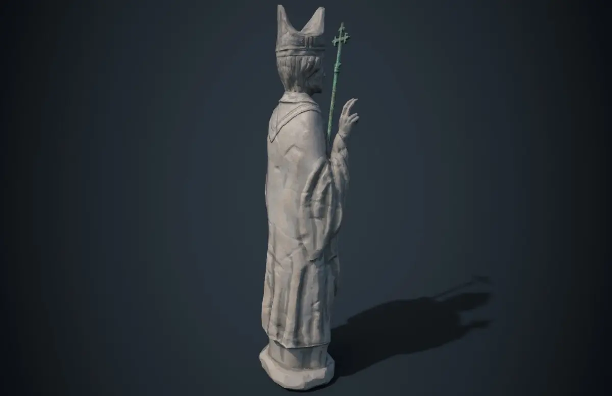 Medieval statue of a saint. Very often statues of this type were used to decorate the facades of churches.Ideal for use in a game engine.