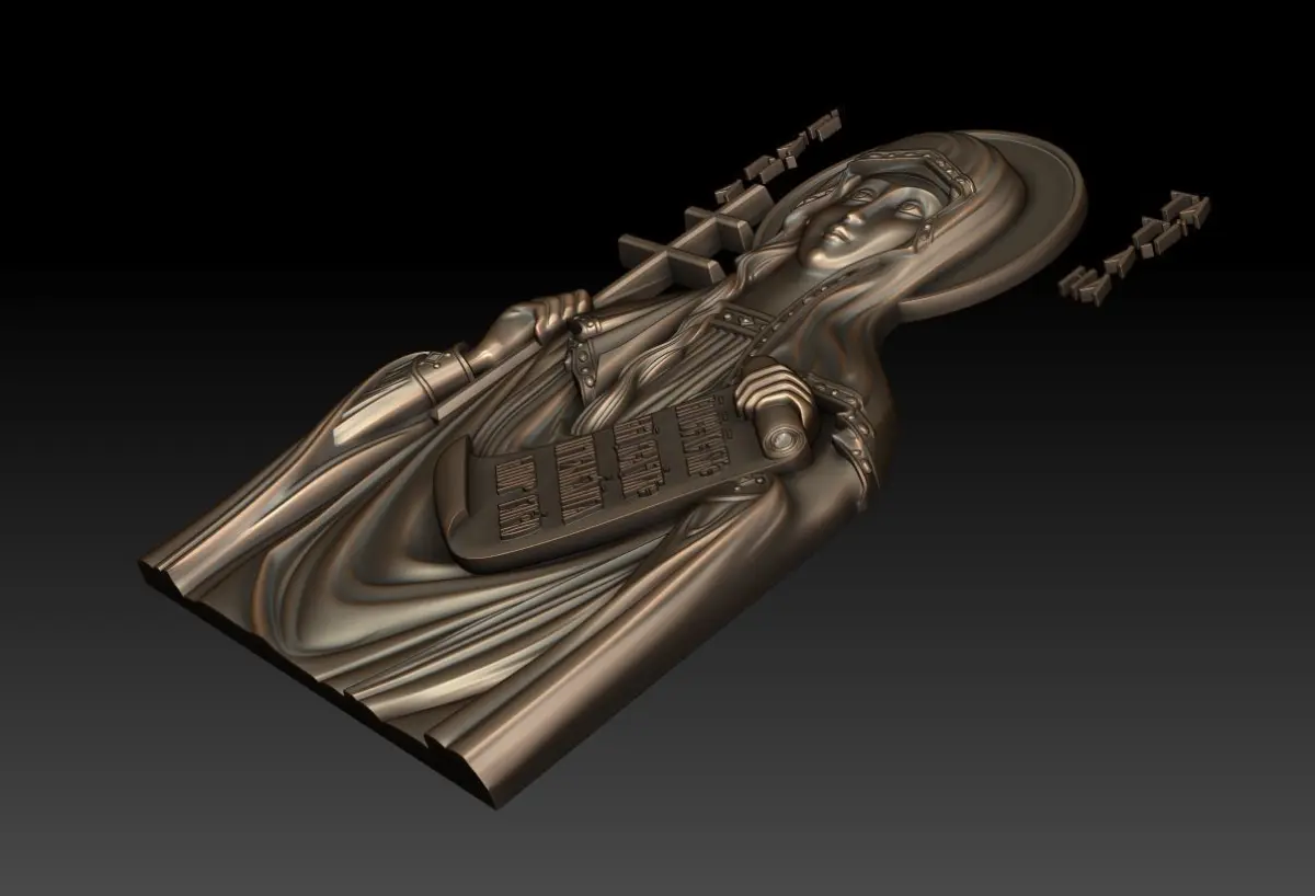 3d model Orthodox icon Saint Tatiana of Rome (Τατιανὴ) . For milling on CNC machines. This model is ONLY for CNC, it is NOT for 3d printing. Can be used in the production of souvenirs, furniture, jewelry. Files in stl format, for import to artcam, rhinoceros, 3ds max, etc. You can scale the model to any size you need.