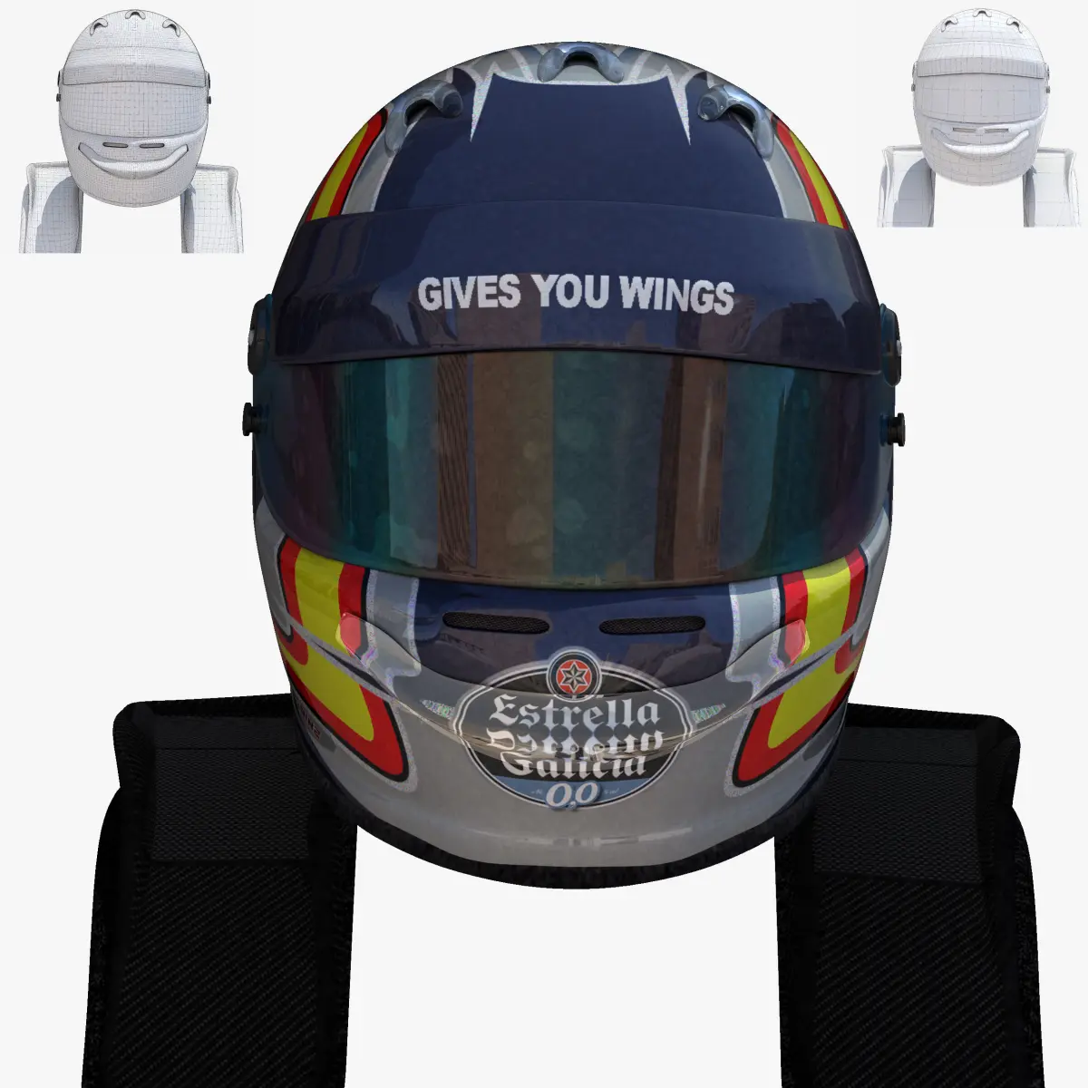 This is a 3D low poly model ,it was designed to provide a high definition in a low poly. Standard low-poly mesh with specific poly count. It`s the most accurate and realistic of the market. This is a recreation of a F1 Helmet model,it can suffer modification over the season. The model is completely ready for use visualization in maya. For low poly model simply press 1 and for the high resolution press 3. In Cinema4d go to function menu and subdivide. In 3dmax meshsmooth In the low poly: Poly count : 5384Vertex count : 5681In the smooth version: Poly count : 21534Vertex count : 22111Textures included. Each texture is in jpg format and have a 4K texture resolution for high quality It has color texture Because of different Disk topology at different computers it might be required to change the textures path at the destination computer. The 3D model was created on real base. It's created accurately, in real units of measurement, qualitatively and maximally close to the original. Please feel free to contact us for any query or if you need further assistance, we will be happy to assist you.