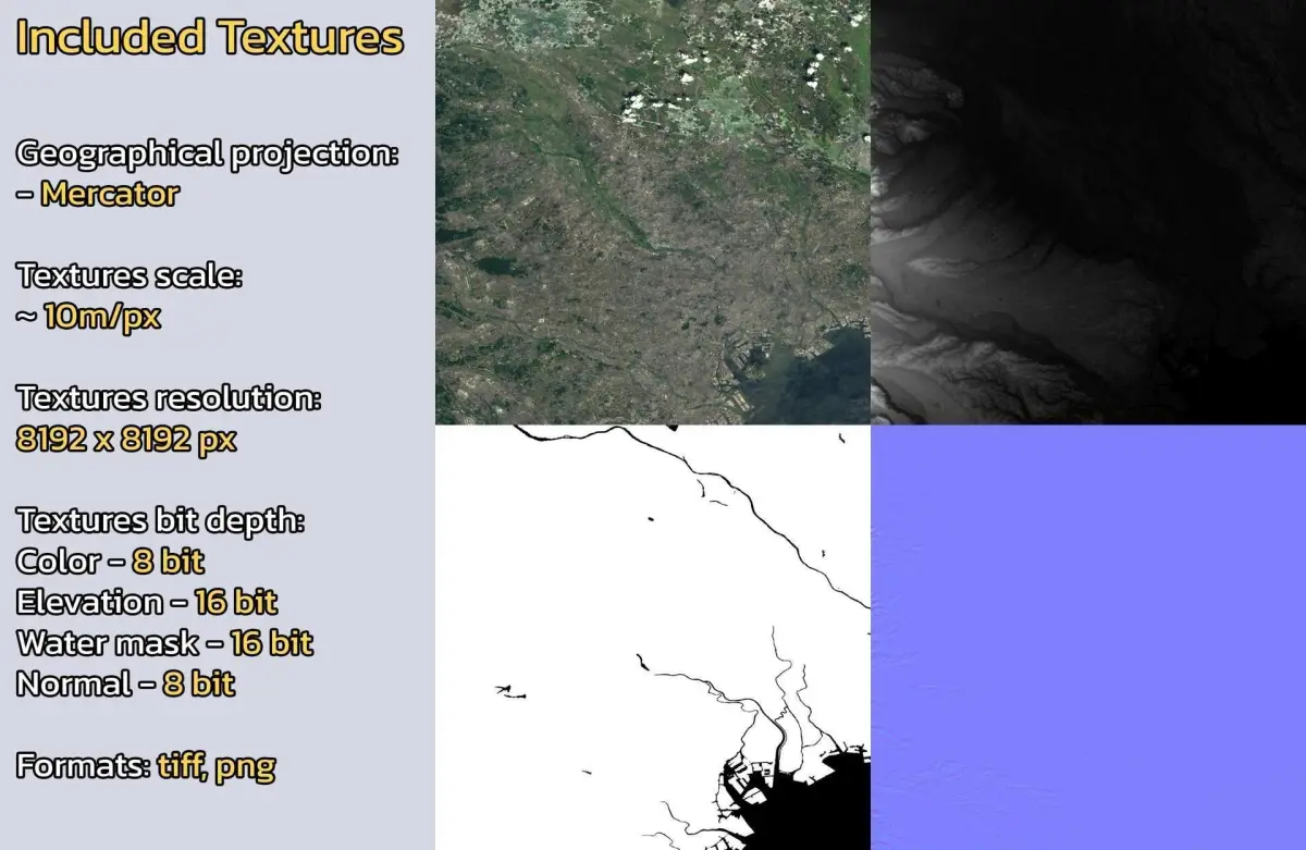 - Textures resolution: ~10m/px