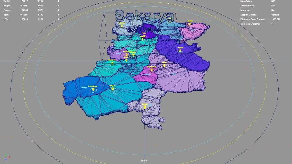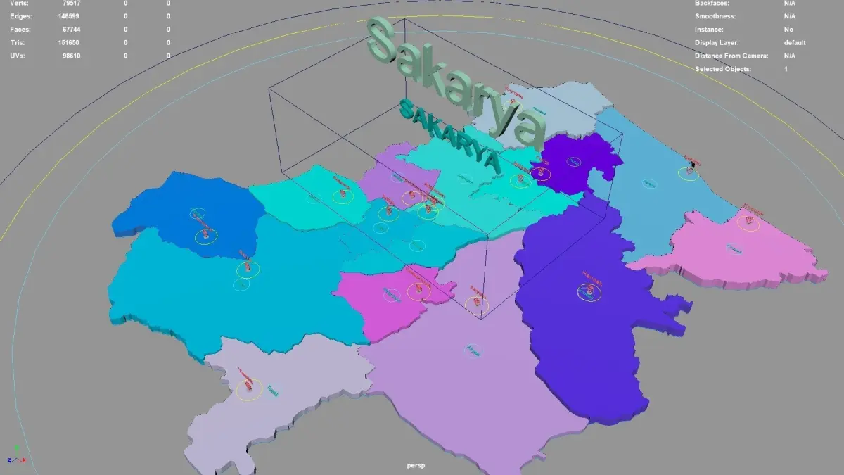 Sakarya regions : The model is divided according to the administrative region of Sakarya. Each region is clearly separated so you can easily isolate it or change the colors. Names are also editable and separate.