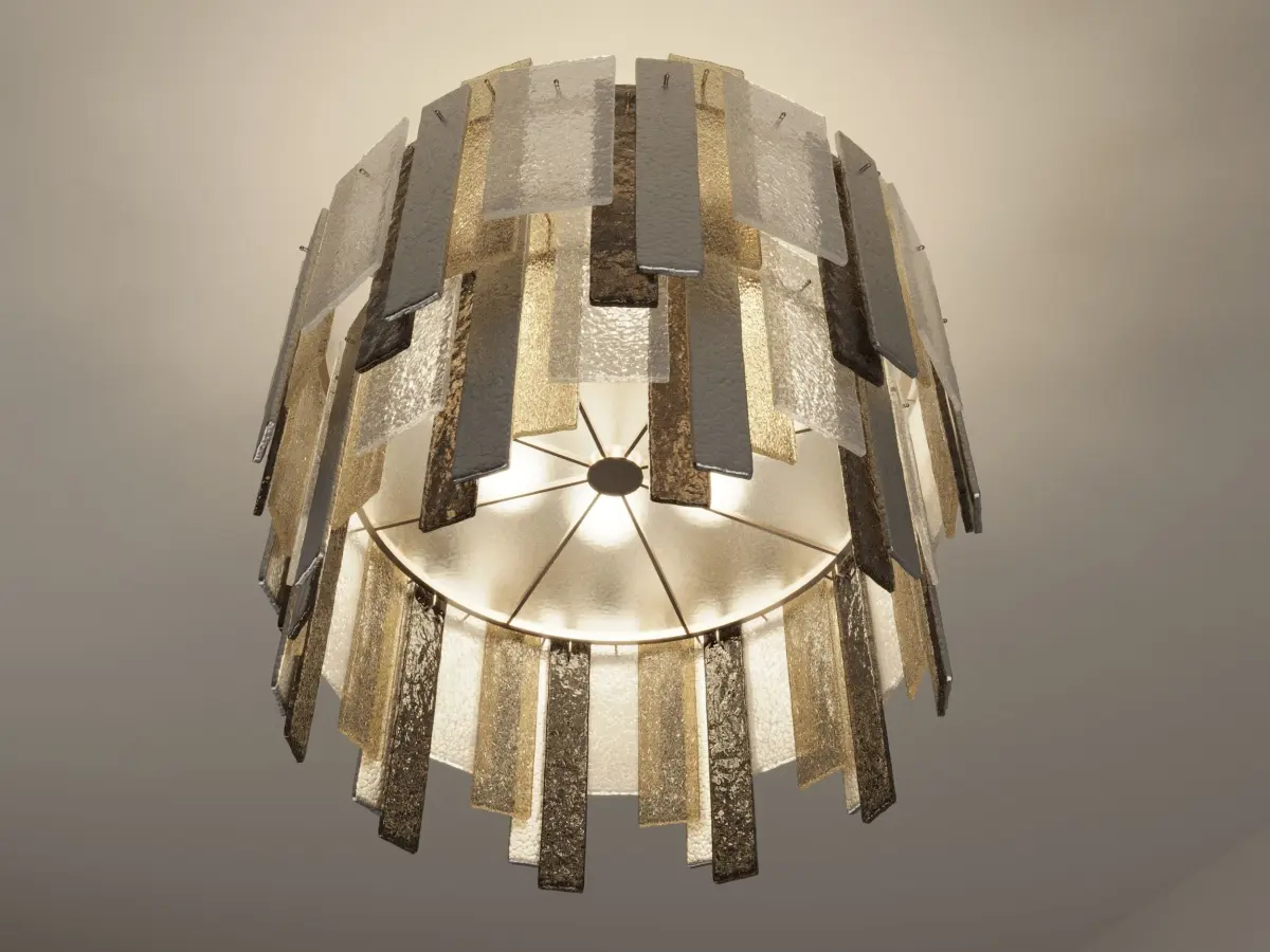 A version of the popular Stromboli chandelier, the Salina uses the same hand-floated Murano glass panels on a circular gold powder coated frameCreatorCharles Burnand (Designer)DimensionsHeight: 37.41 in. (95 cm)Diameter: 47.25 in. (120 cm)Materials and TechniquesMurano Glass