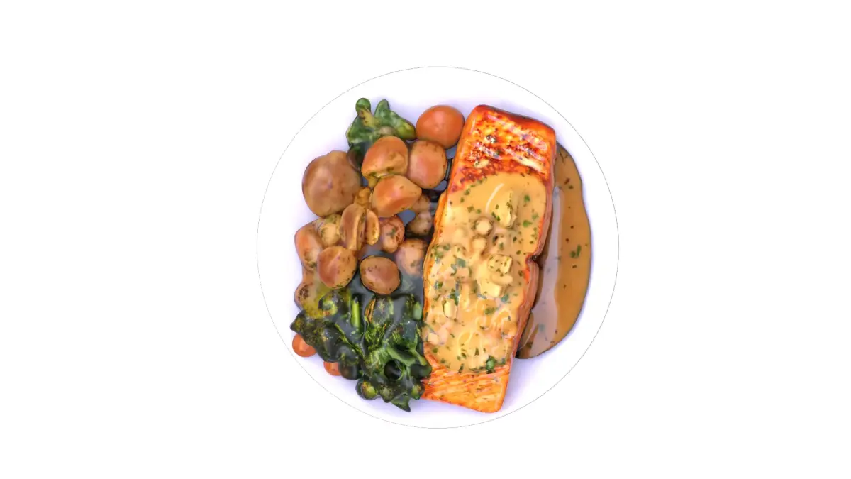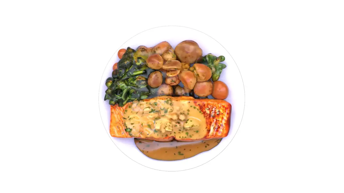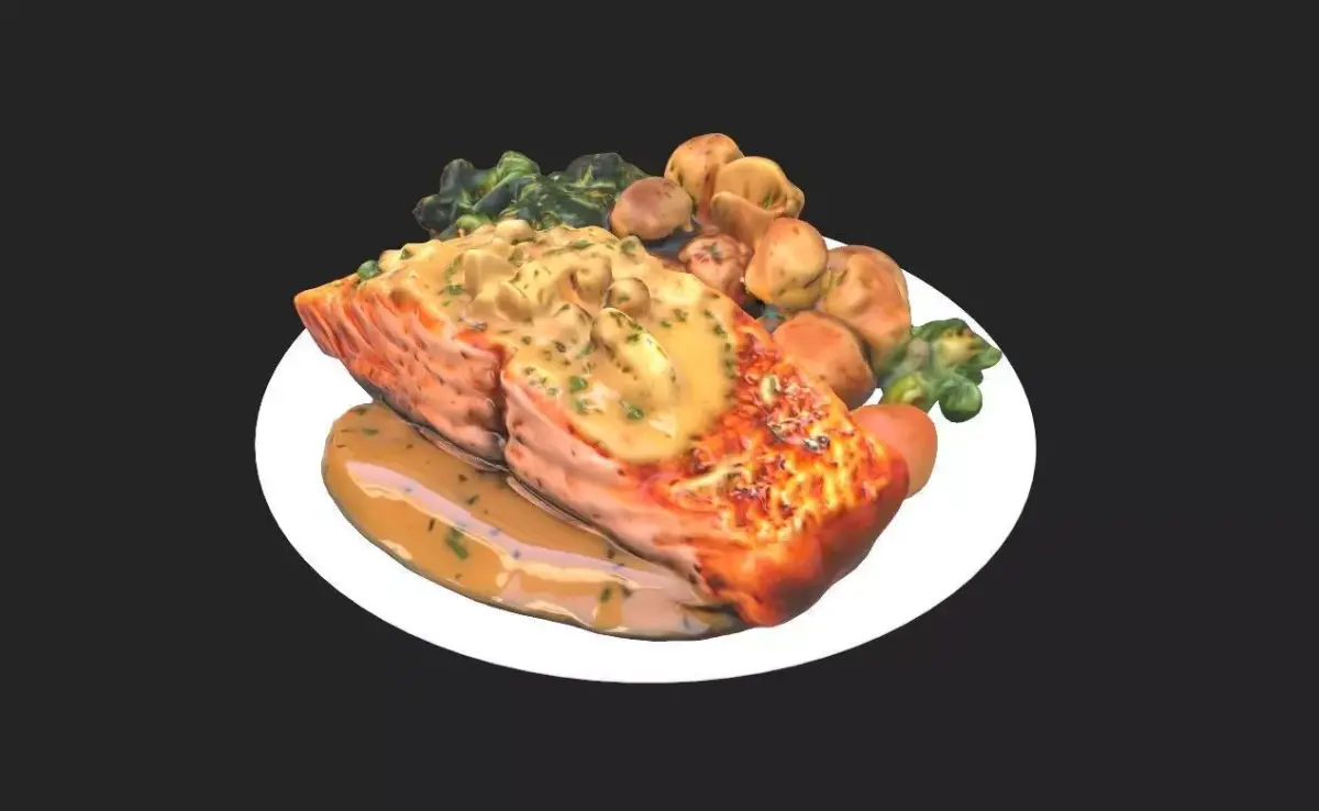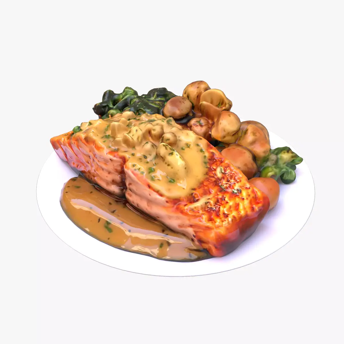 Salmon with Crispy Potatoes and Broccolis Low-poly 3D model