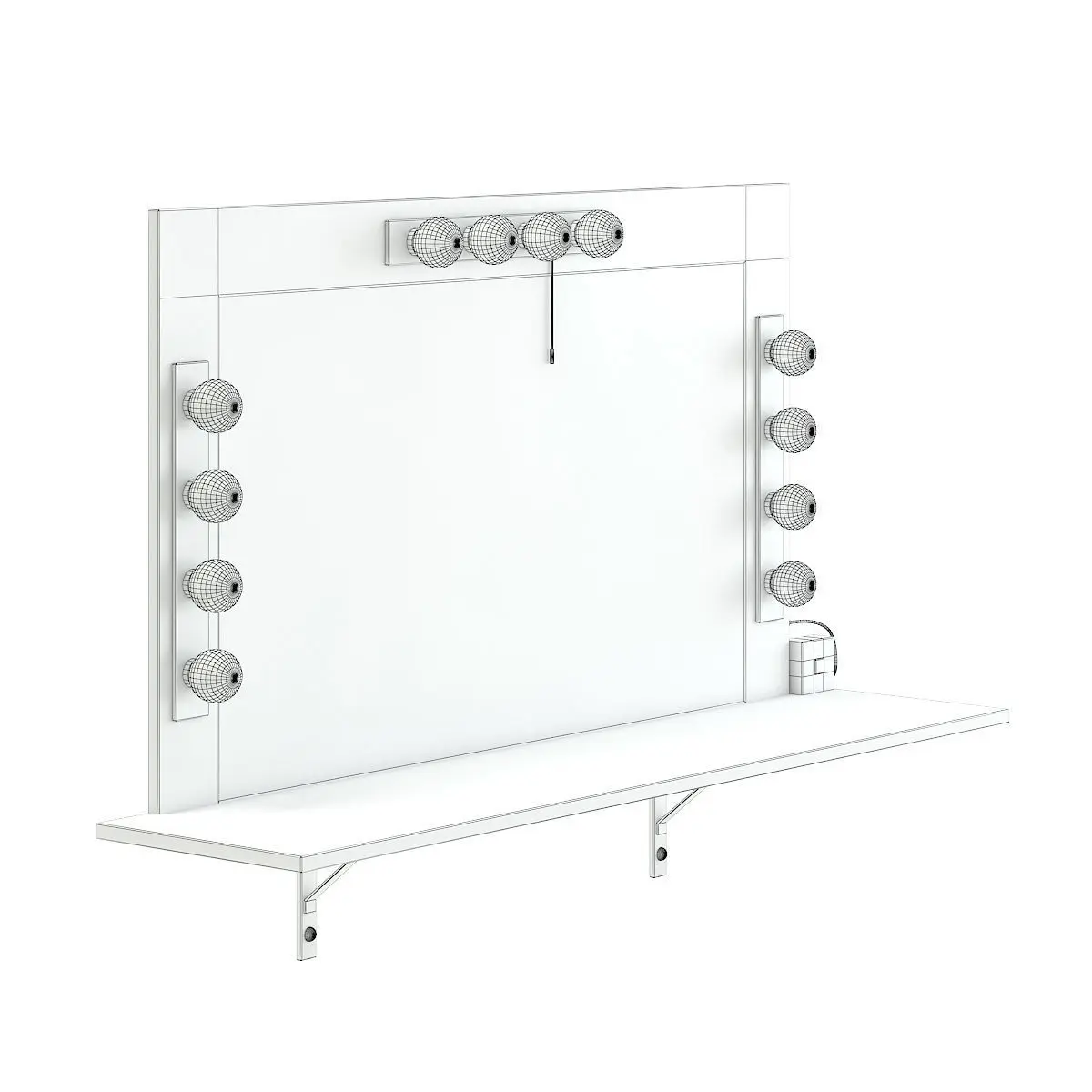 Salon mirror with lights 3d model. It has a small shelf at the bottom. Compatible with 3ds max 2010 (V-Ray, Mental Ray, Corona) or higher, Cinema 4D R15 (V-Ray, Advanced Renderer), FBX, OBJ and Unreal Engine.