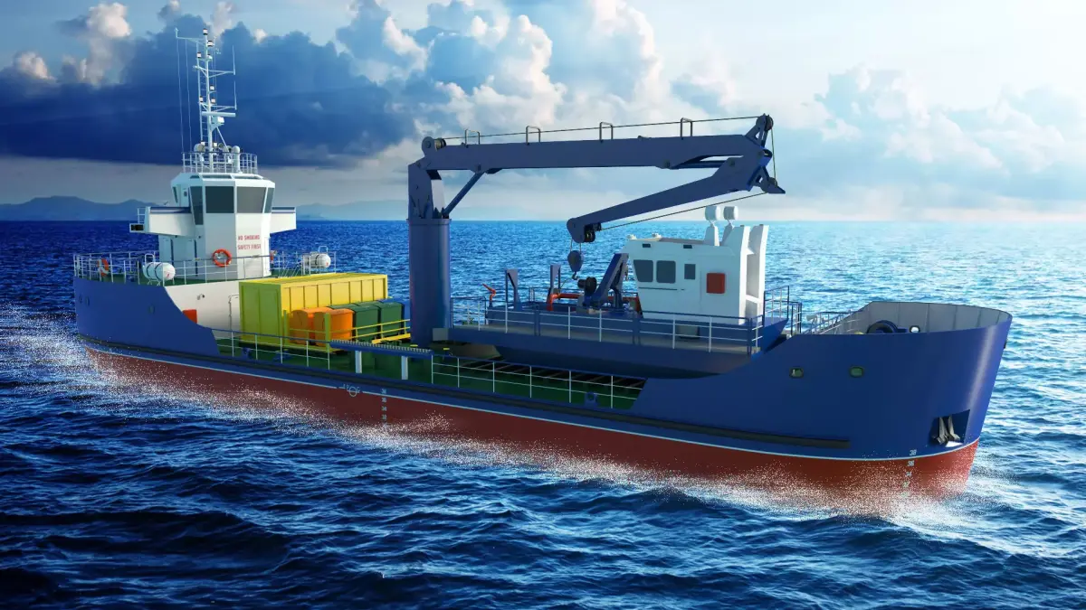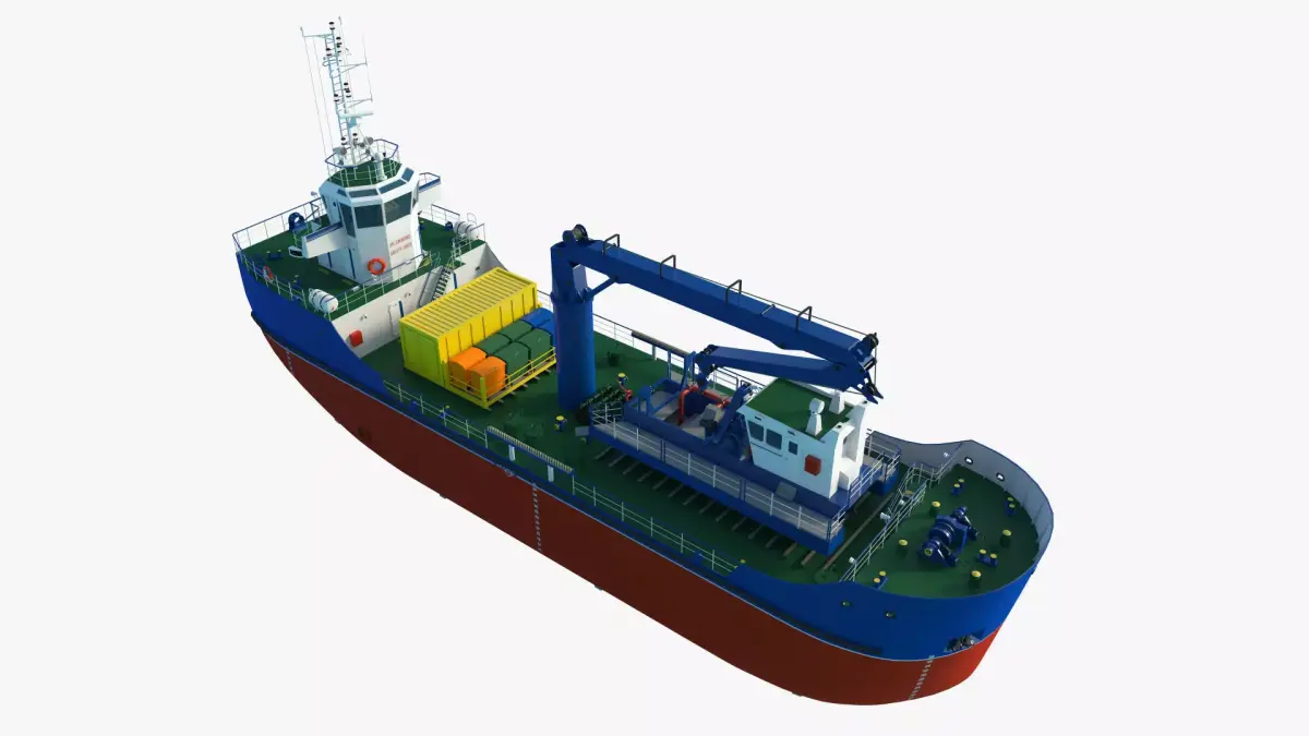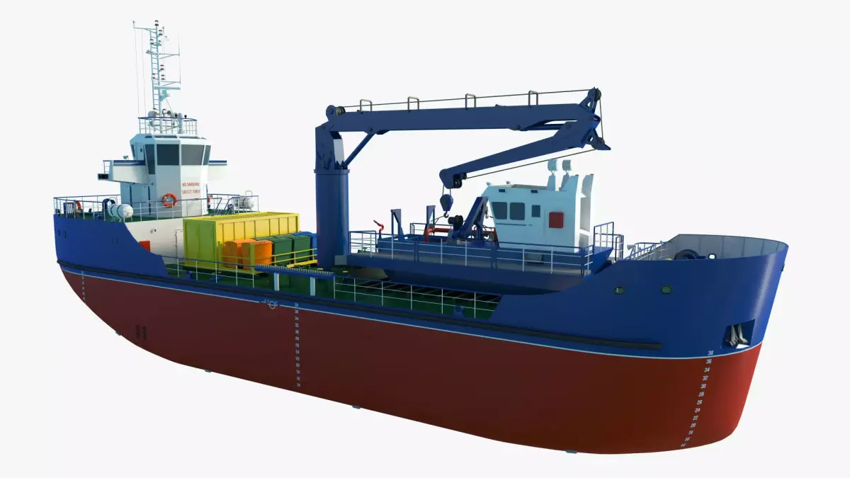 High-quality 3D model of a Salvage Ship with Trash Skimmer Boat.