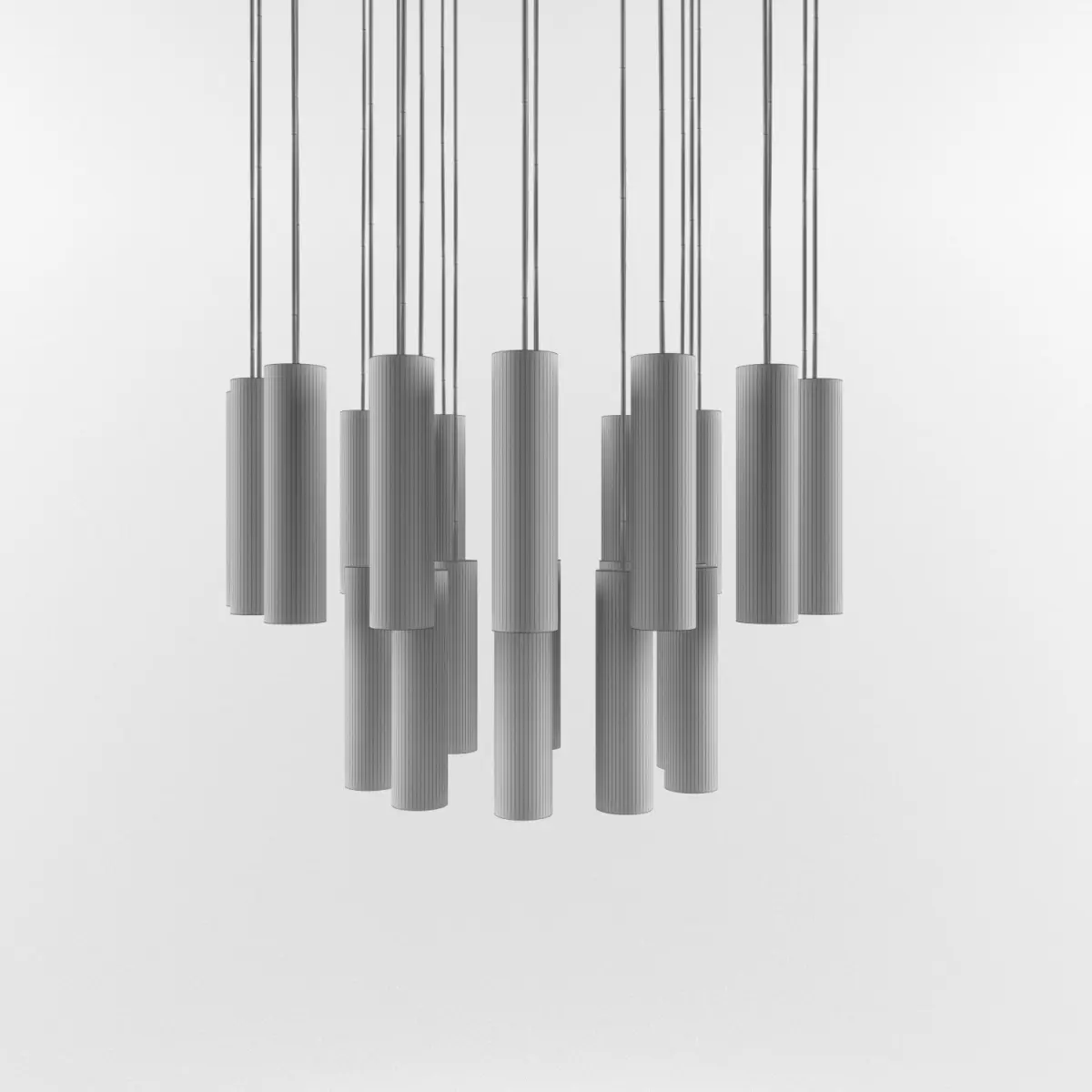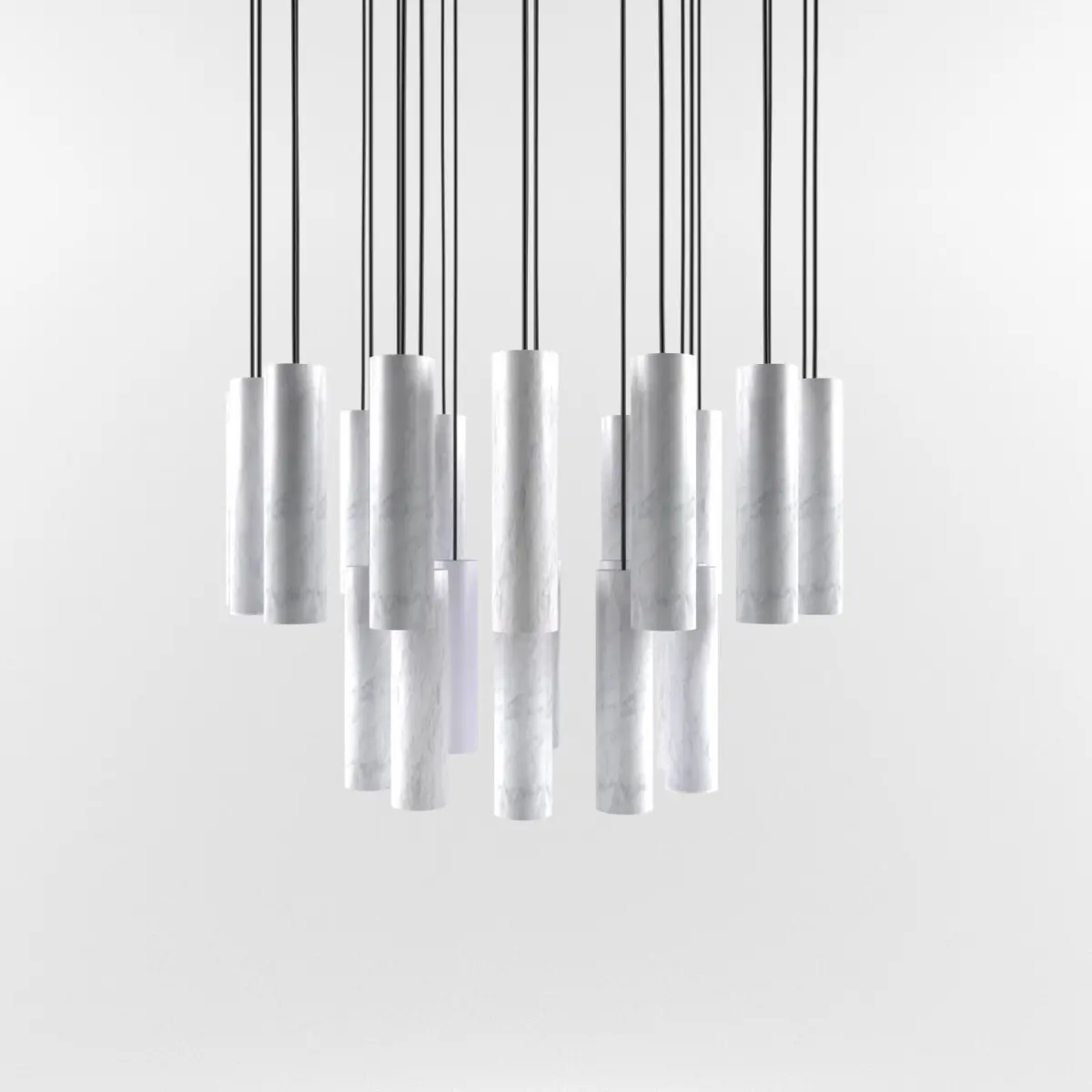 Composed of 26 lamps, each with a diameter of 6 cm x height 25 cm (2 3/8 x 9 7/8”)Material: Bianco Carrara marble
