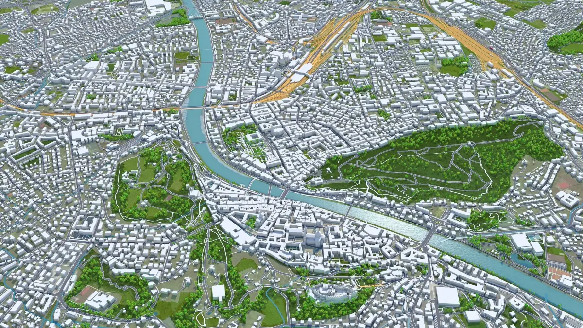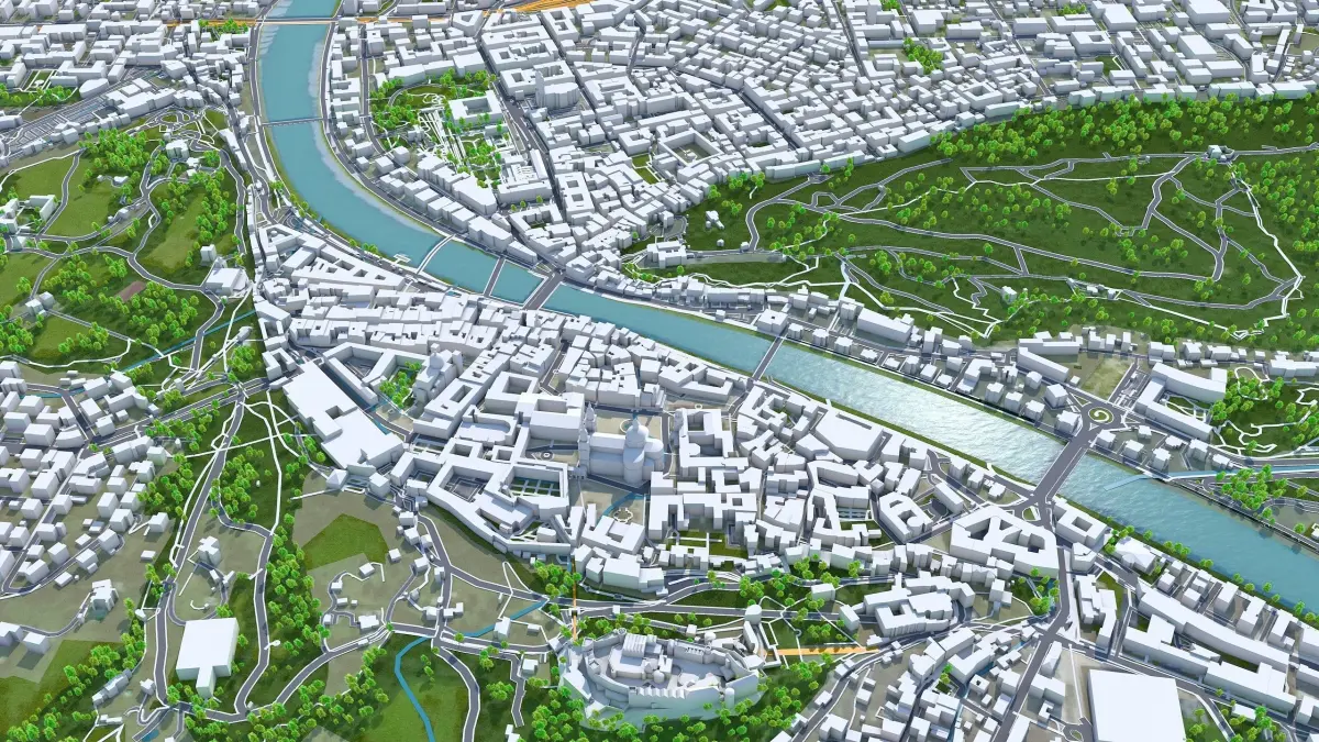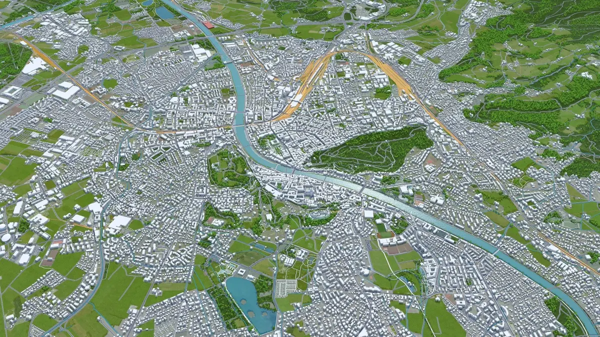 Accurate 3D city model and its surrounding area based on GIS data