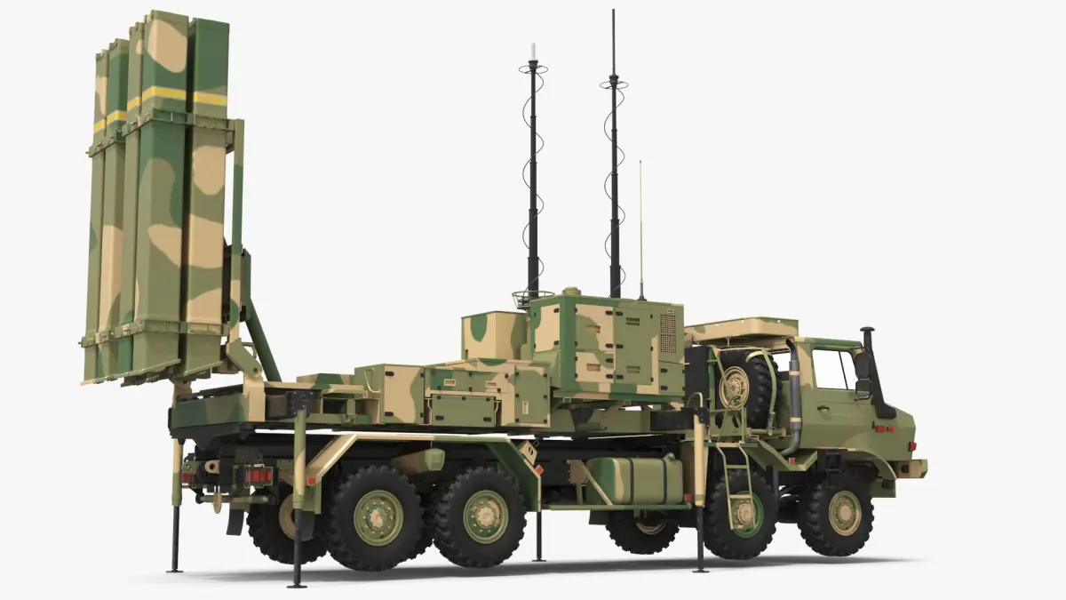 SAM Vehicle Combat Ready Green Camo is a 3d model of a military vehicle system, specifically designed for transportation and deployment of missile defense equipment.