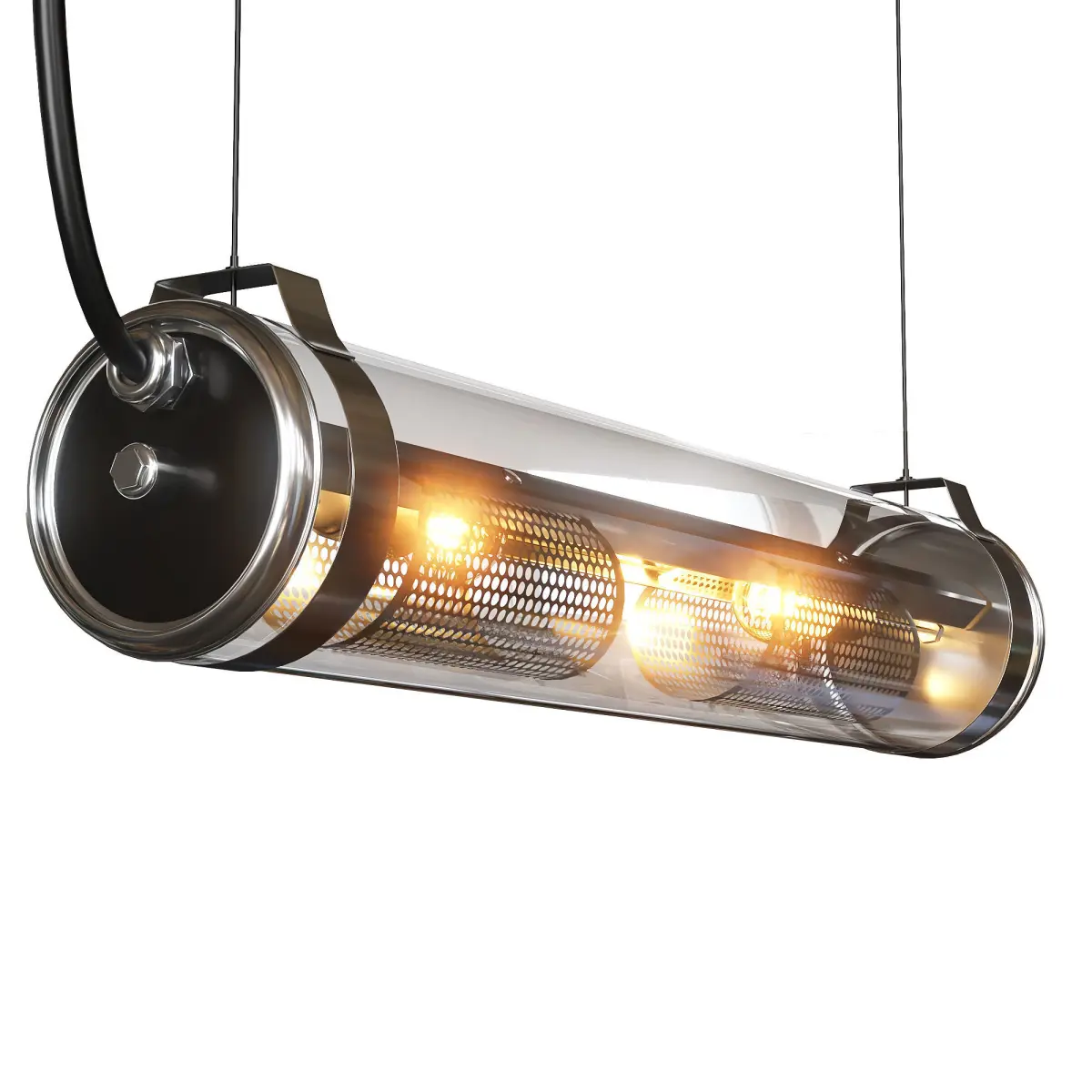 Whether fitted on the ceiling or suspended, the Rimbaud luminaire could light up the corridors of any company, the dining room of a flat, a shared kitchen space for coworkers, stairs in a block of flats, restaurant tables, a poolside area, the façade of a public building, or the alleyways in a shopping mall, etc.The Rimbaud luminaire, the traditional industrial Sammode icon, can bring great lighting to small and large areas. This model can be fitted as a wall or ceiling light, or carefully suspended on steel wires for a simple finish. The glass body houses two filament LED bulbs guaranteeing a well lit area and visual comfort.