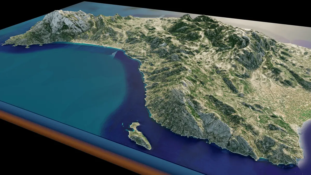 3d model landscape of Samos island, Aegean Sea, Samos, Greece.