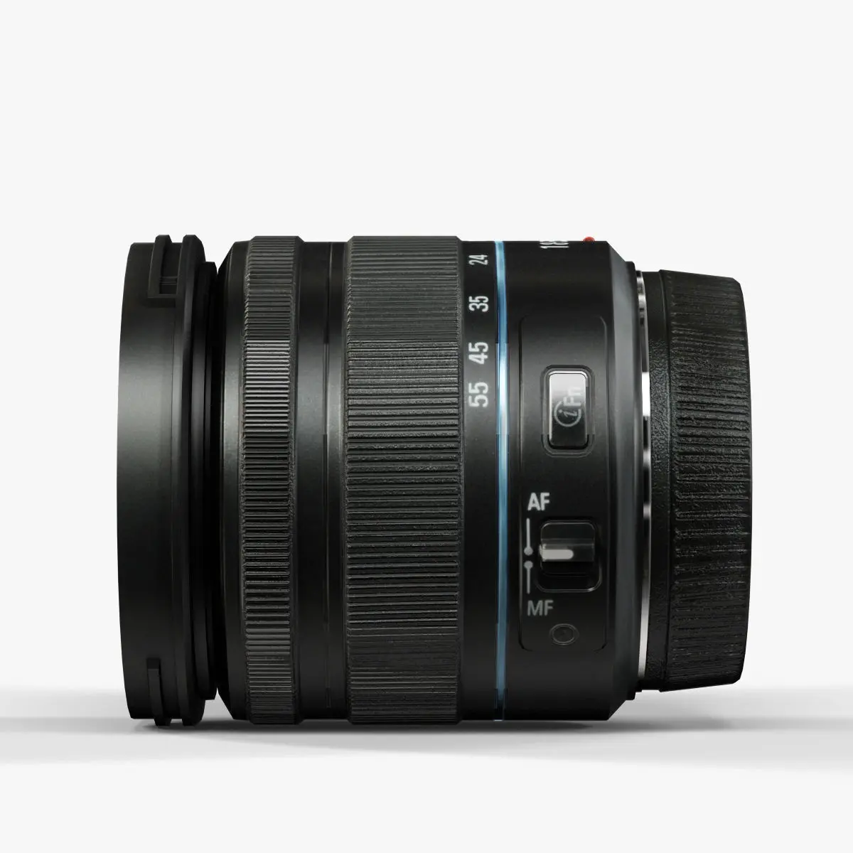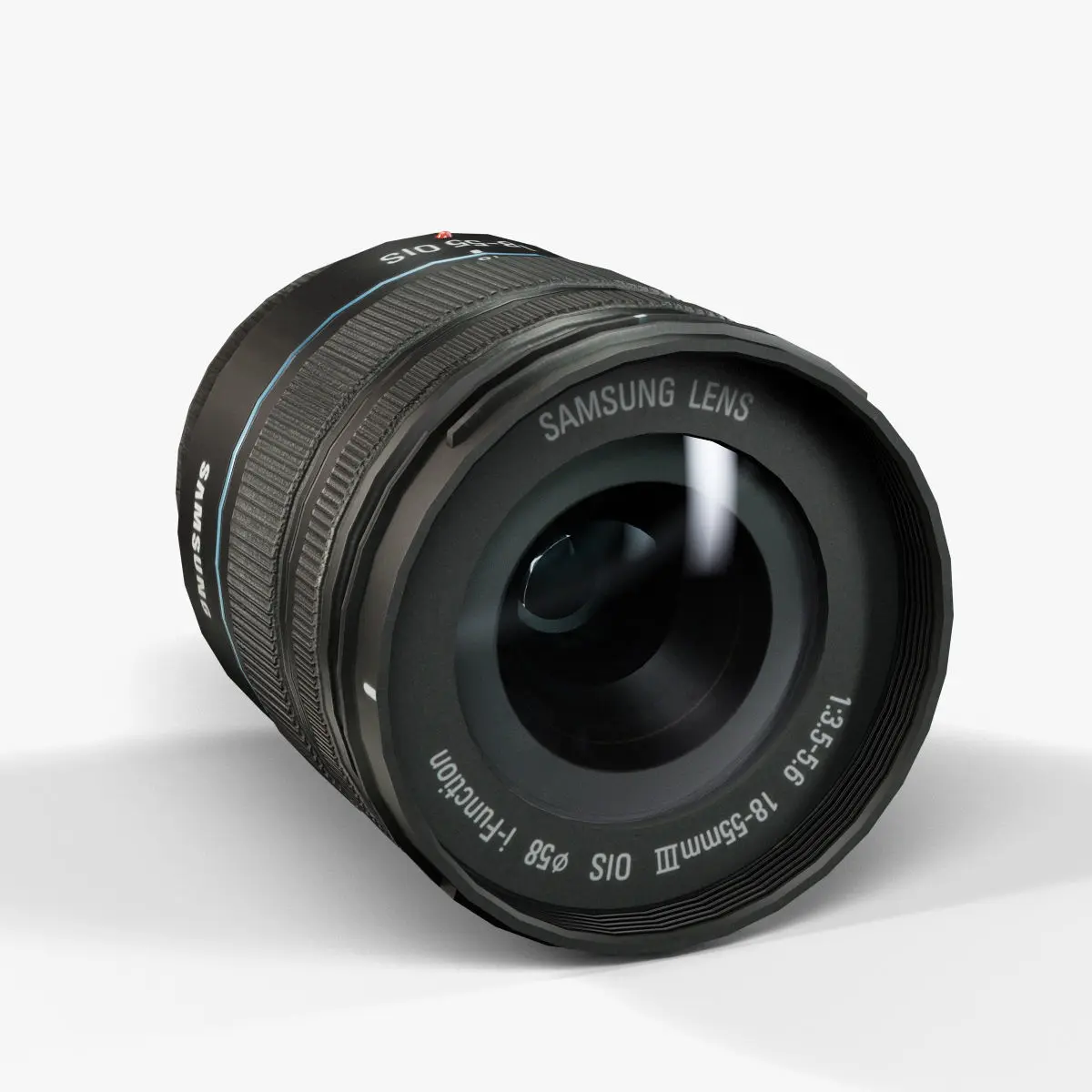 • Let me present to you high-quality low-poly 3D model Samsung 18-55mm Lens. This model can be used in various fields 3D Graphics such as game development, advertising, interior design, motion picture art, visualization, etc... Modeling was made with ortho-photos of real lens that is why all details of design are recreated most authentically.