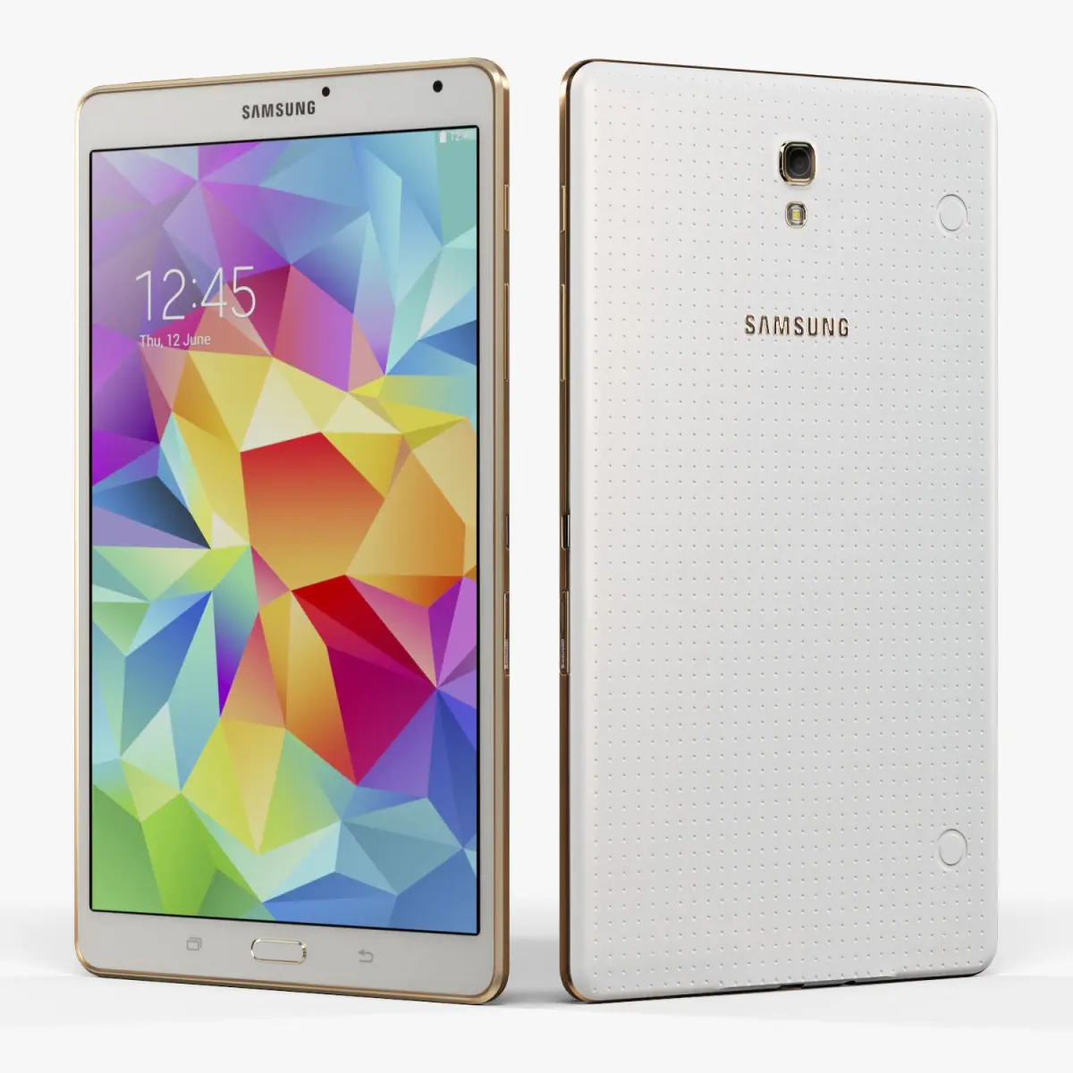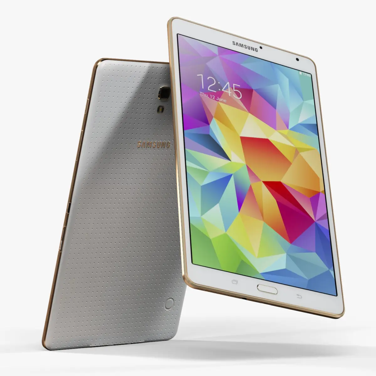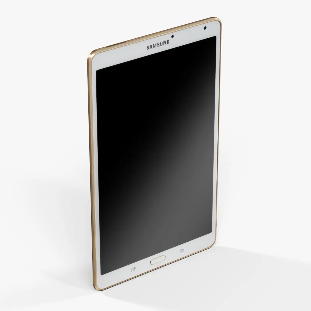 • Let me present to you high-quality low-poly 3D model Samsung Galaxy Tab S 8.4. This model can be used in various fields 3D Graphics such as game development, advertising, interior design, motion picture art, visualization, etc.. Model is presented in two colors: Black and Titanium Bronze. Modeling was made with ortho-photos of real tablet that is why all details of design are recreated most authentically.