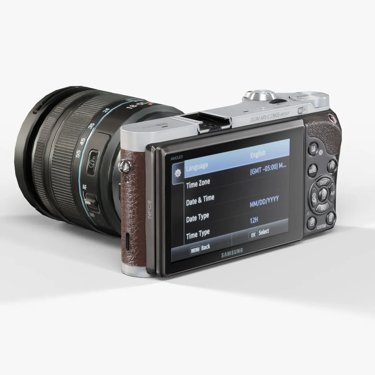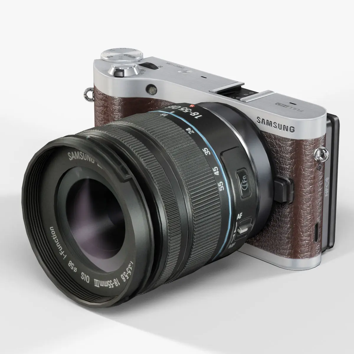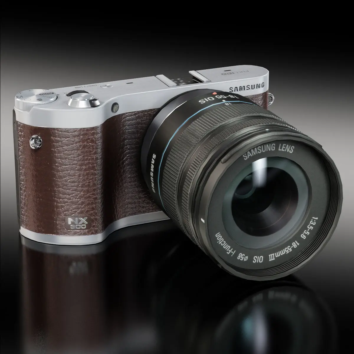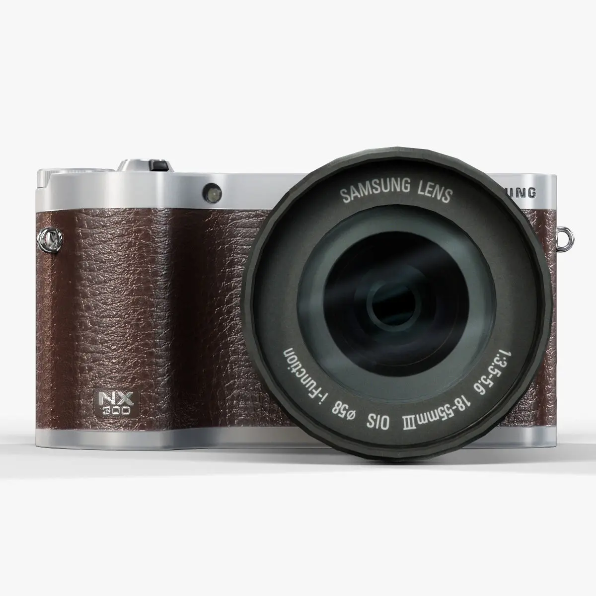 • Let me present to you high-quality low-poly 3D model Samsung NX-300 Kit lens 18-55mm Brown. This model can be used in various fields 3D Graphics such as game development, advertising, interior design, motion picture art, visualization, etc... Modeling was made with ortho-photos of real camera that is why all details of design are recreated most authentically.