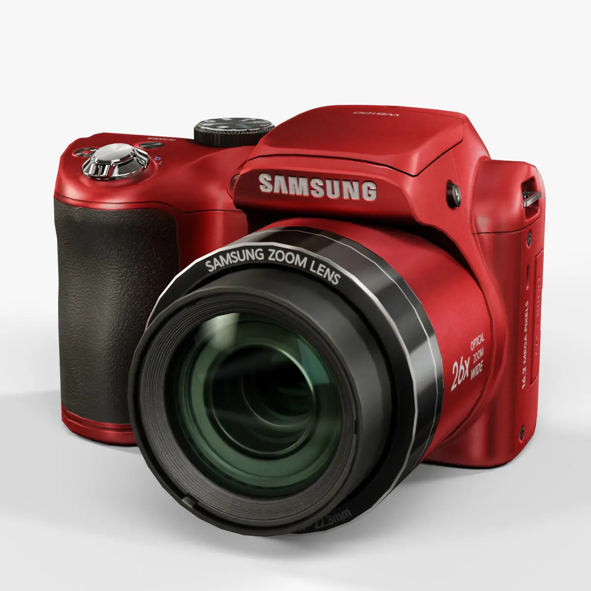 • Let me present to you high-quality low-poly 3D model Samsung WB100 Red. This model can be used in various fields 3D Graphics such as game development, advertising, interior design, motion picture art, visualization, etc... Modeling was made with ortho-photos of real camera that is why all details of design are recreated most authentically.