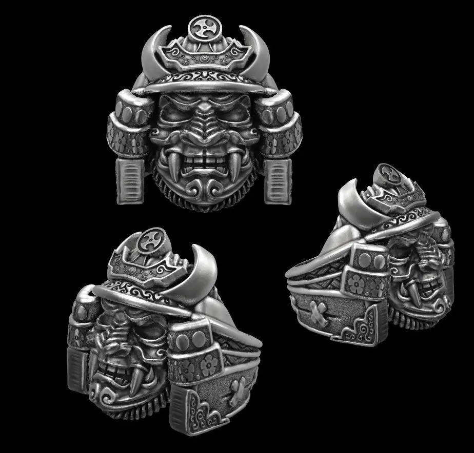 The head of the samurai is made in the form of a ring. The model is solid and available in .stl and .obj formats. 3 ring files are available for download (ring inner diameter, mm): 16, 18, 20.