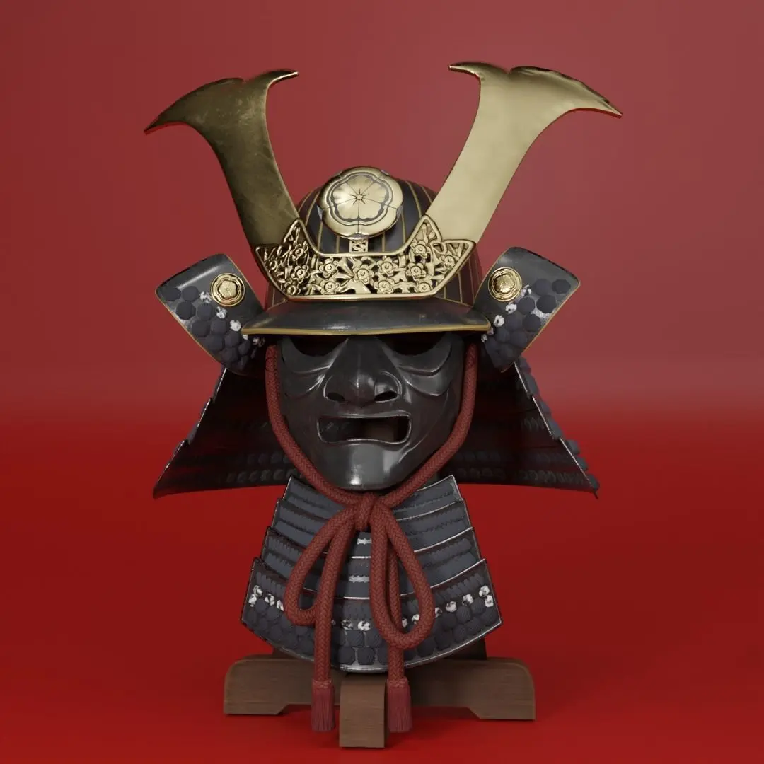 Samurai helmet game-ready model