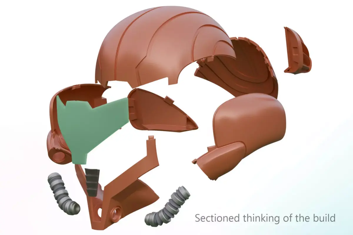 Unlike other similar models, this version was designed by a maker, for makers. By hiding the unions within the natural geometry of the helmet, we’ve cut your post-processing time in half.