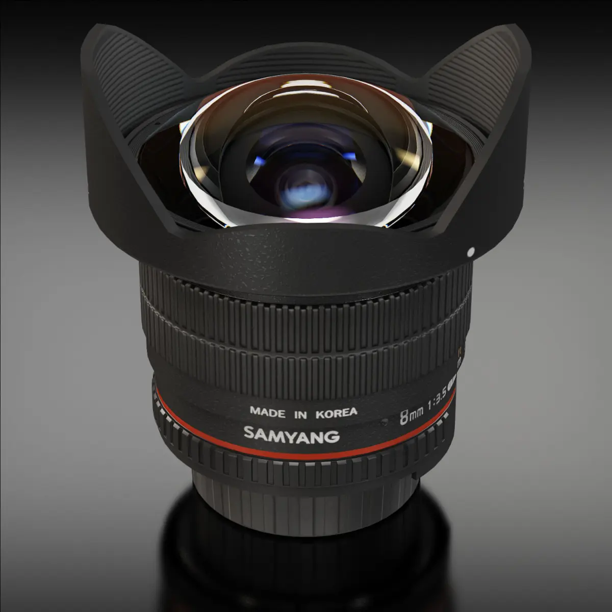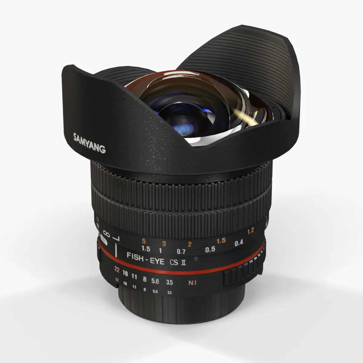 • Let me present to you high-quality low-poly 3D model Samyang 8mm f/3.5 AS IF UMC Fish-eye CS II AE Nikon F Lens. This model can be used in various fields 3D Graphics such as game development, advertising, interior design, motion picture art, visualization, etc... Modeling was made with ortho-photos of real lens that is why all details of design are recreated most authentically.