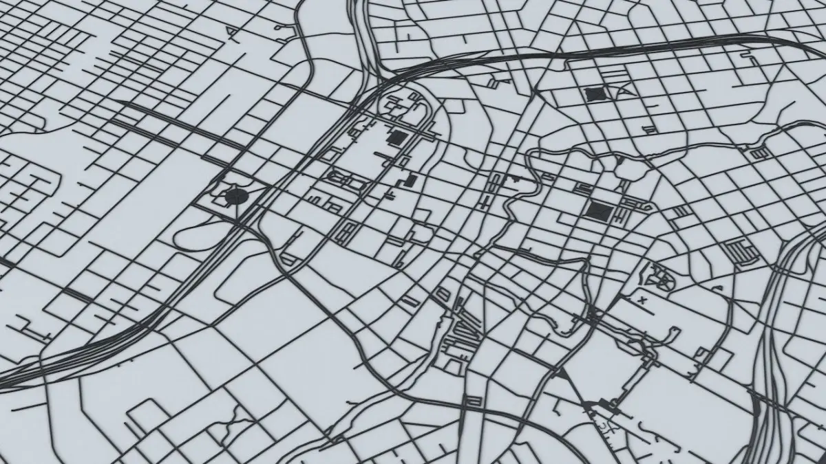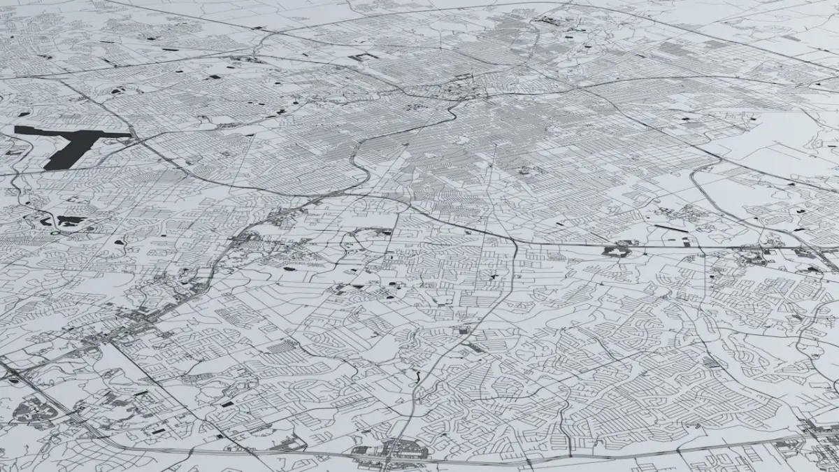- the model is positioned on a flat surface (road network is on the “floor” - no elevation data included)