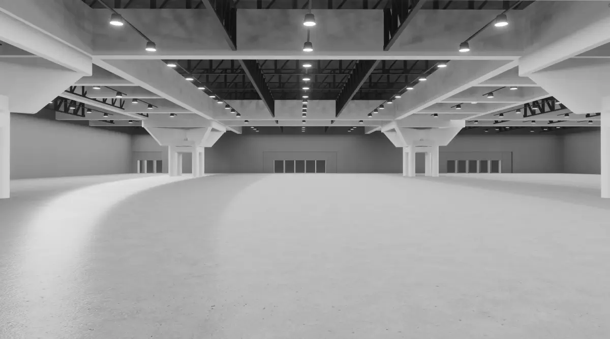 A low-polygon, 3D model of the Convention Center Hall C in San Diego.