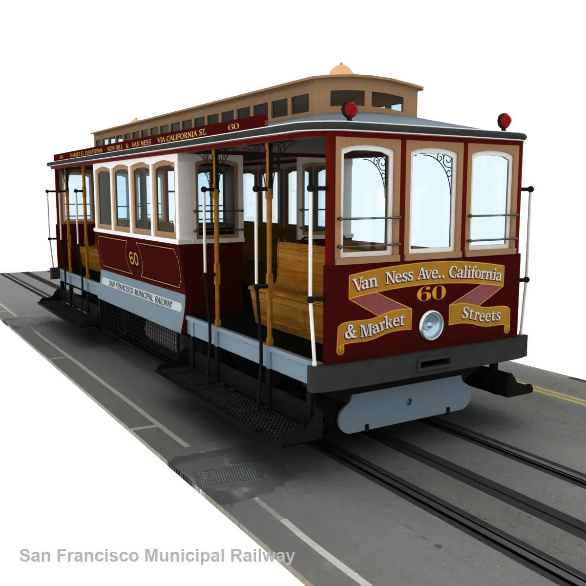 These days there are only two fleets still in service. One of these is Powell-Hyde and Powell-Mason, while the other is California Street. This model is a reproduction of car No. 60, of the California Street fleet, built by MUNI (San Francisco Municipal Railway) in 1998 this car was brought into service in 2002.