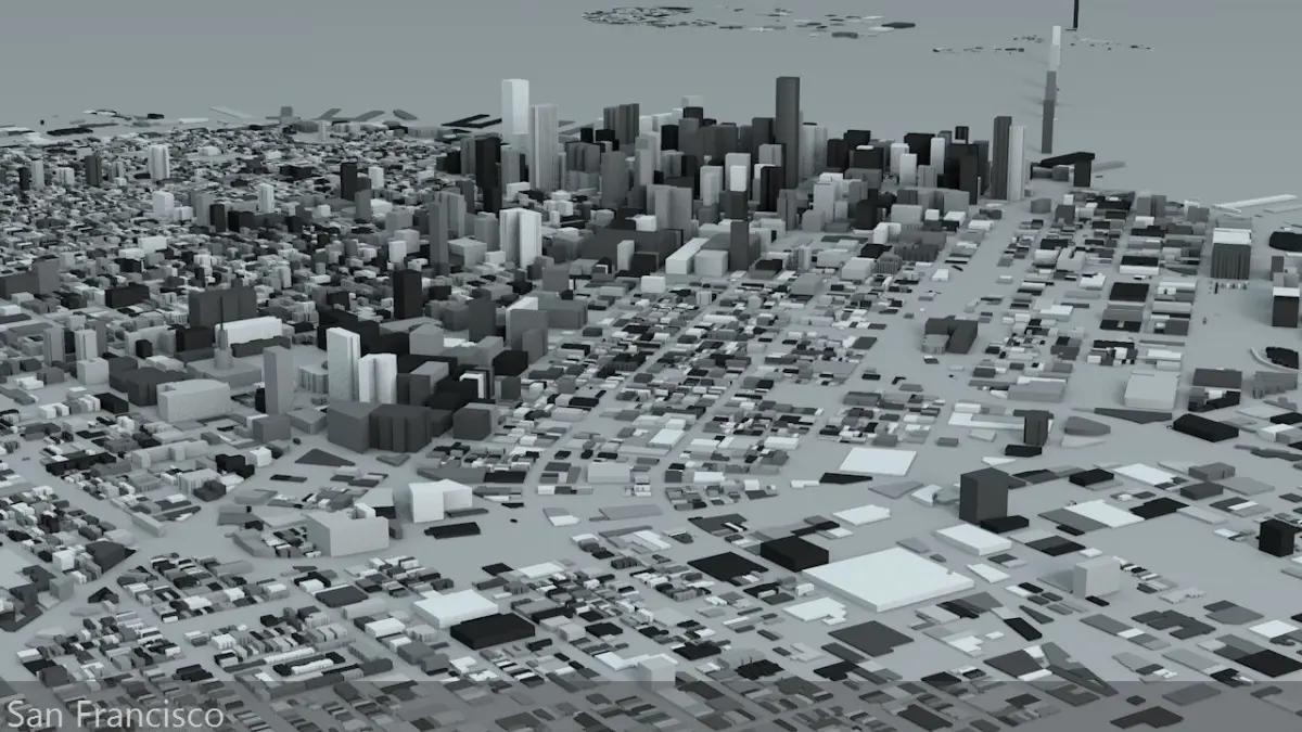 - this model is based on real data therefore this is a realistic buildings and streets setup of San Francisco, USA