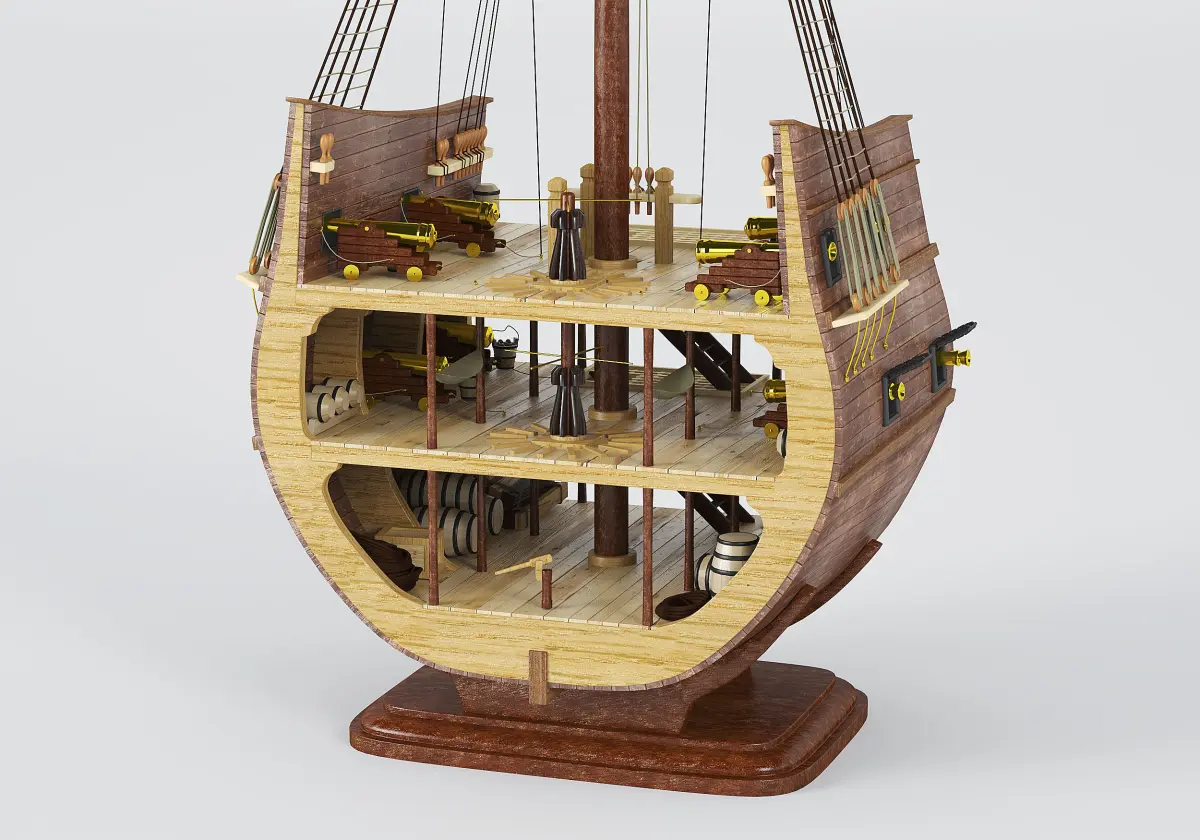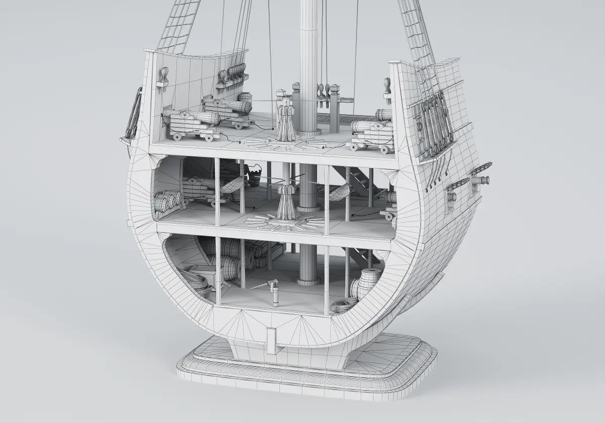 I'm glad to present you this nice wooden ship model. This is a cut version of the legendary ship San Giovanni Battista 1688. The model is highly detailed and ready for close-up renders. All the objects and materials are carefully prepared, have unique names and are Vray and Corona friendly.All the way to the textures is removed. For your convenience it contains separate 3ds max files for different render plugins. The model is placed in the center of the scene. Unfortunately sails are not allowed.Just look at the wireframe previews. All the mesh is clean, mostly quadrilaterals, several triangles and no n-gons.