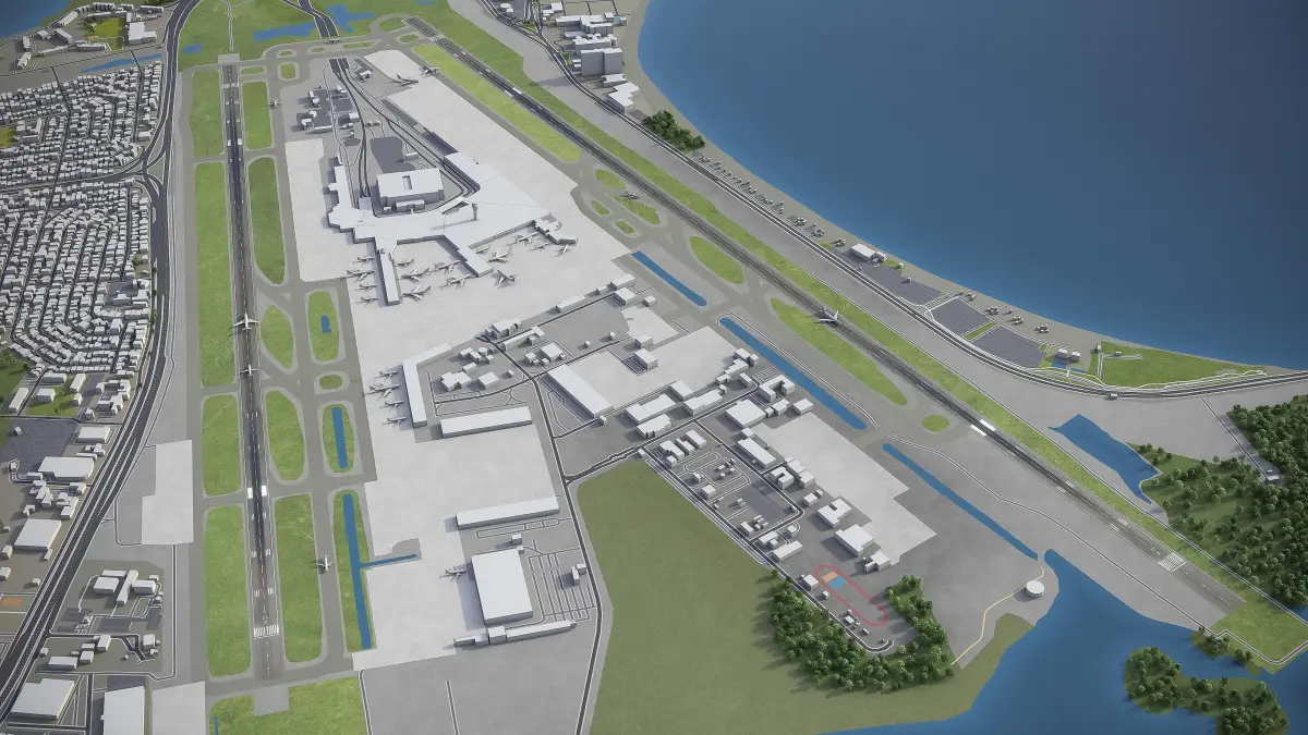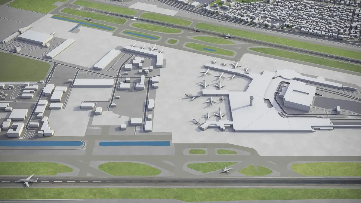 - This airport model is georeferenced, exact and accurate to real-world scale