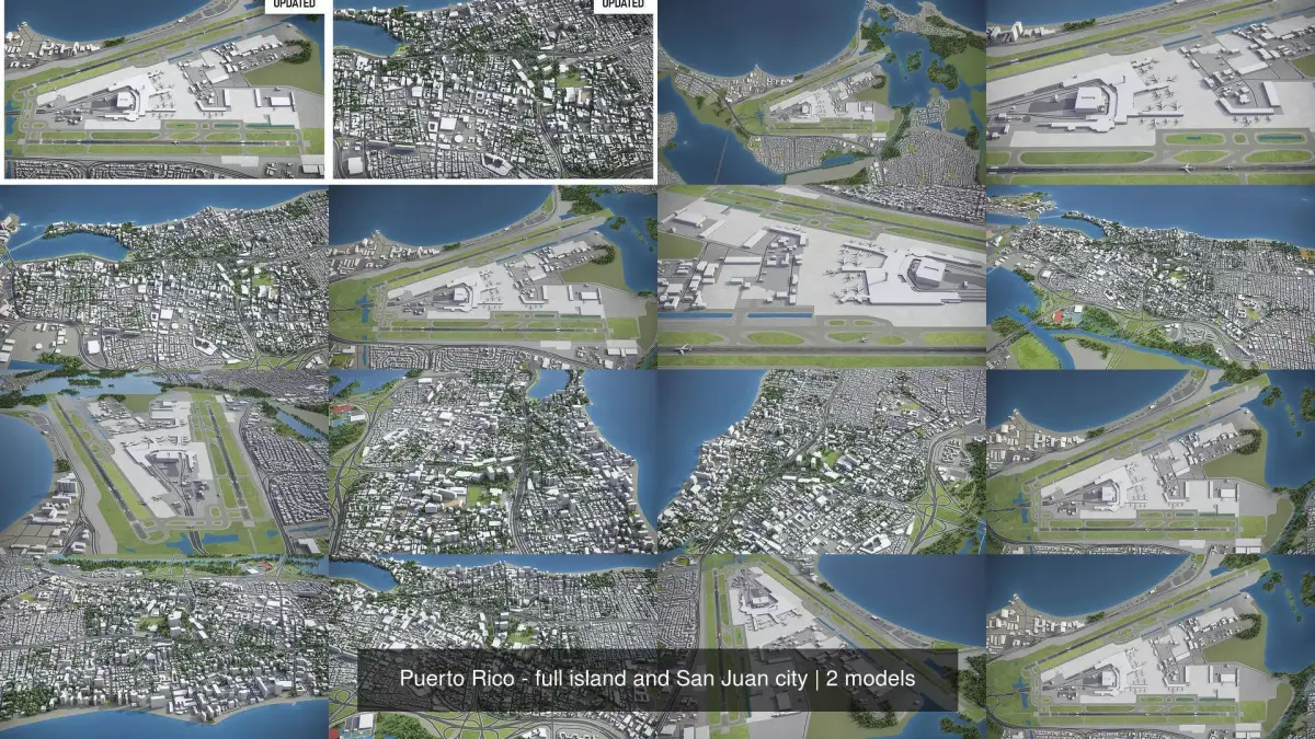 This is exact and accurate to scale 3D city model of Puerto Rico incl. San Juan and airport based on GIS data (February 2020)